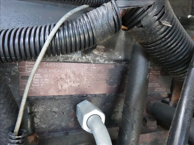 T/A DUMP TRUCK, 14'6" STEEL BOX, CUMMINS M11, 18 SPD, SPRING BEAM SUSPENSION, 198" W/B, 18,000 LB FRONT, 40,000 LB REARS, A/B, ( TITLE BRANDED, AGRICULTURAL )