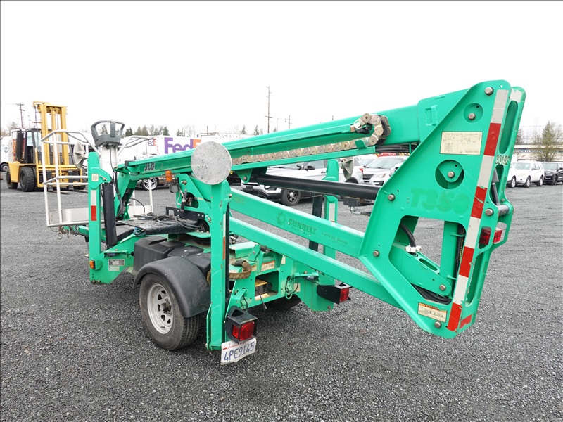 S/A, TRAILER MOUNTED 24V ELECTRIC BOOM LIFT, TORSION SUSPENSION, 35' MAX HEIGHT, 500 LB CAPCITY, SURGE BRAKES