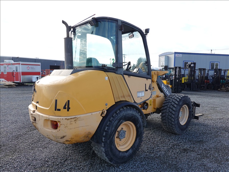 WHEEL LOADER, 58 HP D3DCBE2, HYDROSTATIC, AUX HYD, FORK ATTACHMENT, CAB, 405/70RT8, HOUR METER READS: 9,349 (NO BUCKET)