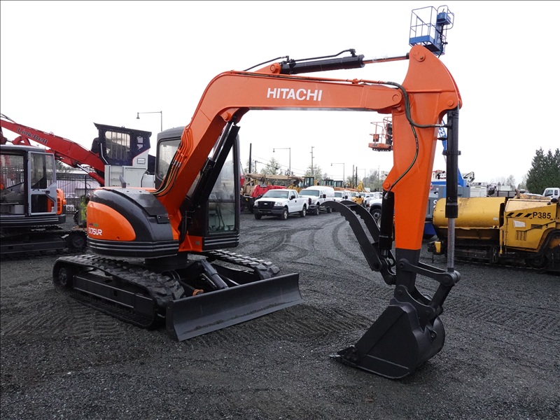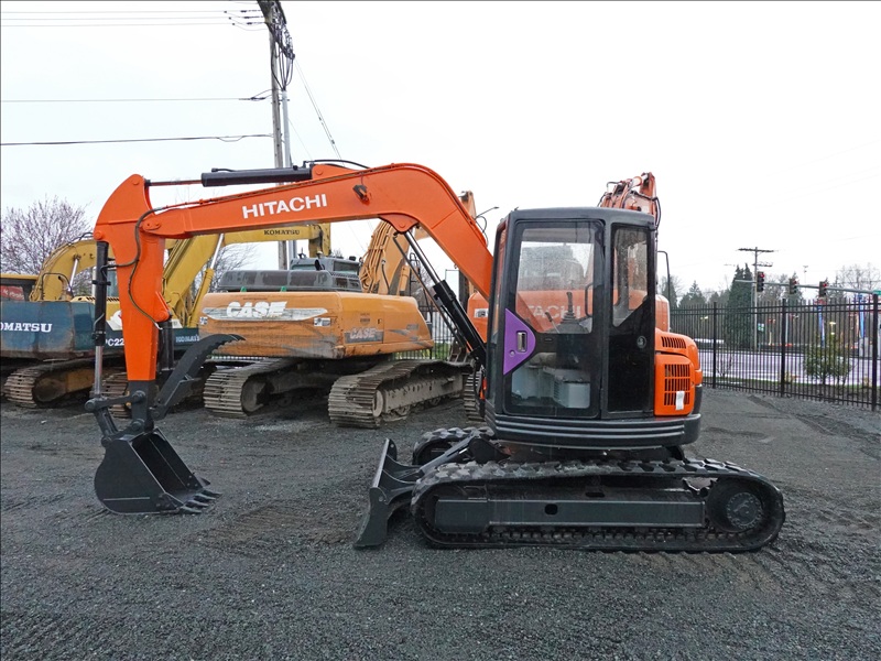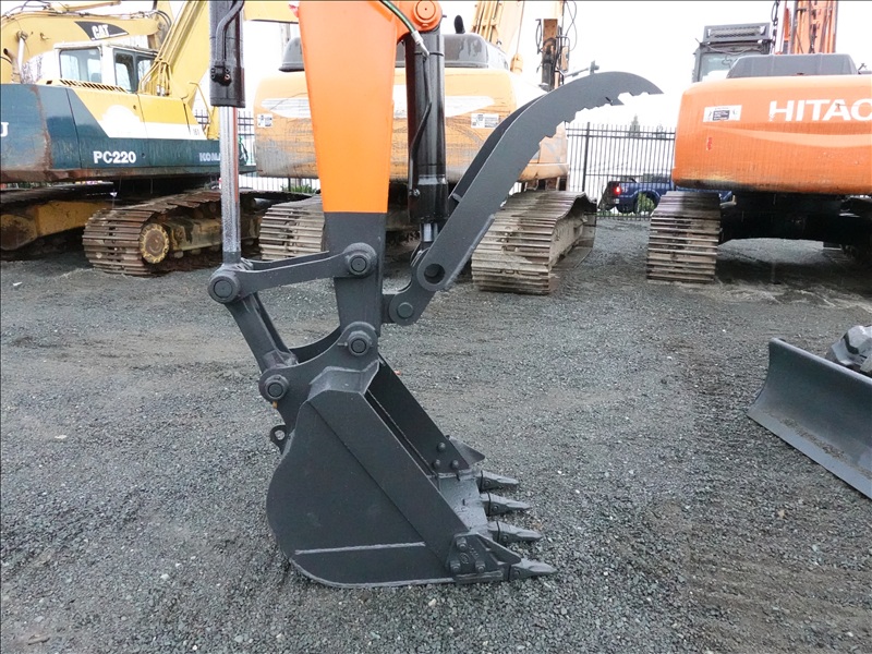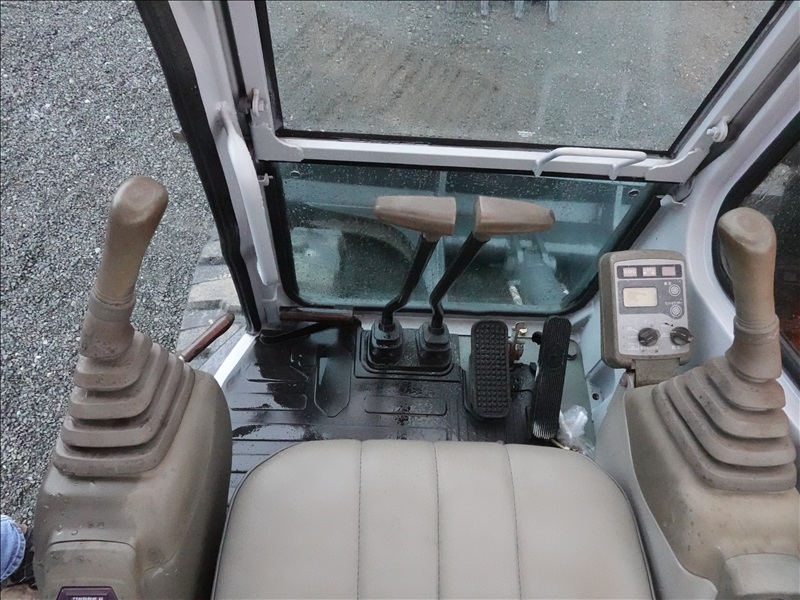 HYDRAULIC EXCAVATOR, NISSAN 4 CYL DIESEL, 71" STICK, 26" BUCKET, HYD THUMB, CAB, HOUR METER READS: 2,418