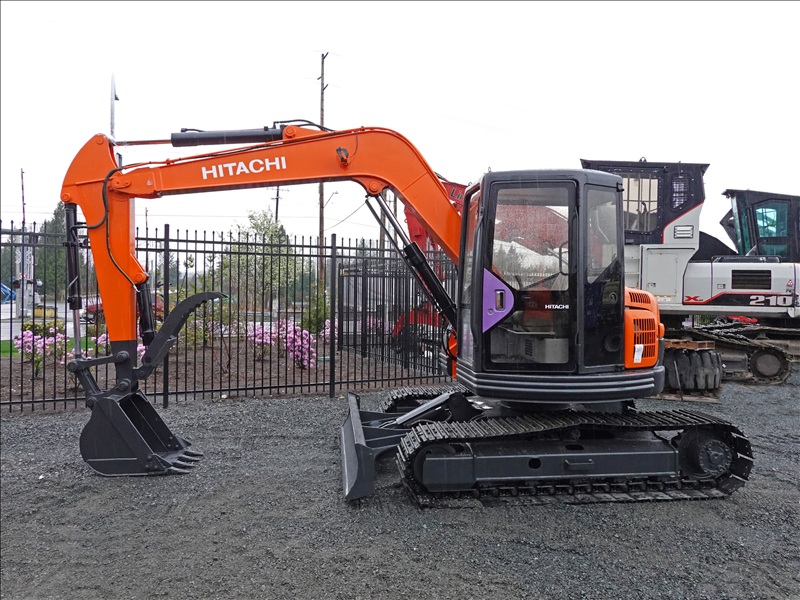 HYDRAULIC EXCAVATOR, NISSAN 4 CYL DIESEL, 71" STICK, 27" BUCKET, HYD THUMB, CAB, HOUR METER READS: 2,316
