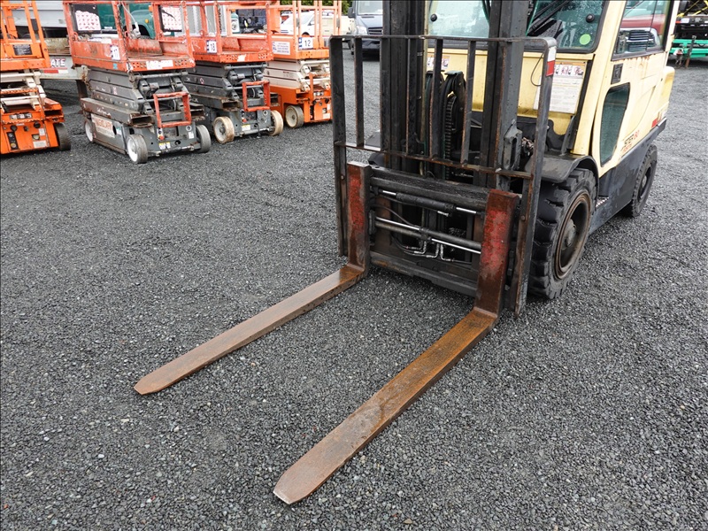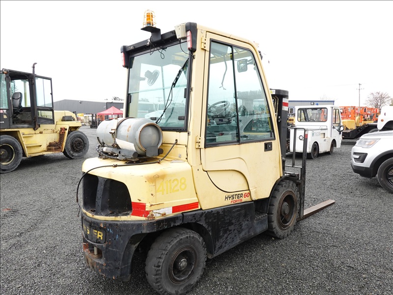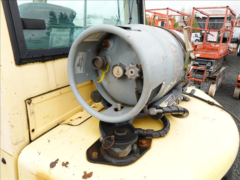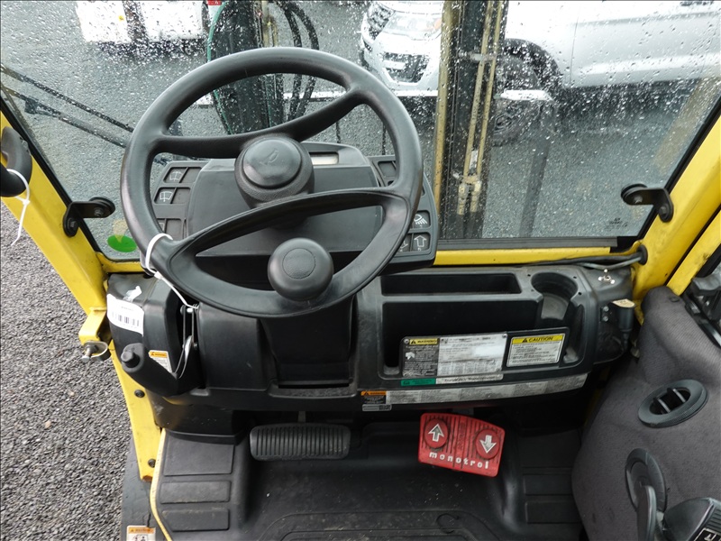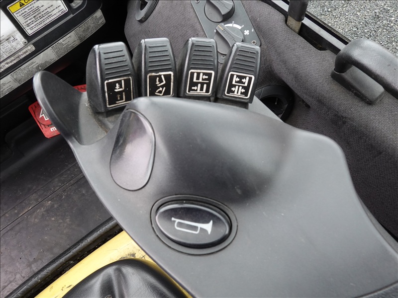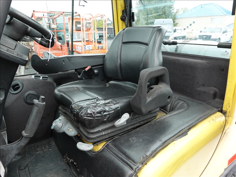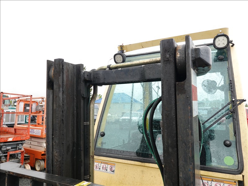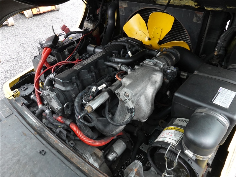 5,350 LB SOLID TIRE FORLIFT, 2-STAGEMAST, SIDE SHIFT, FORK POSITIONER, 4 CYL LPG, CAB (CHECK ENGINE LIGHT IS ON, COOLANT SYSTEM OVER PRESSURIZES, NEEDS REPAIRS)
