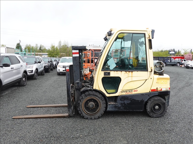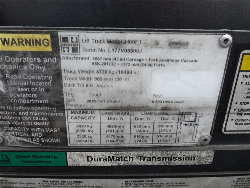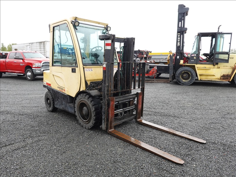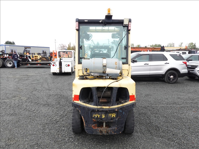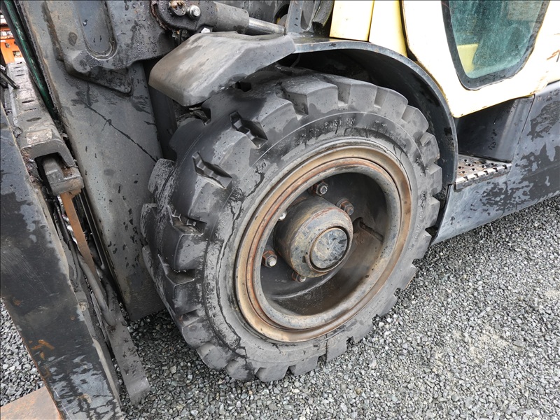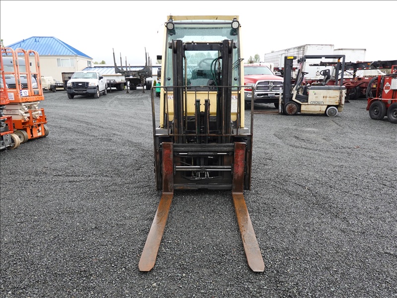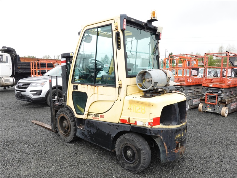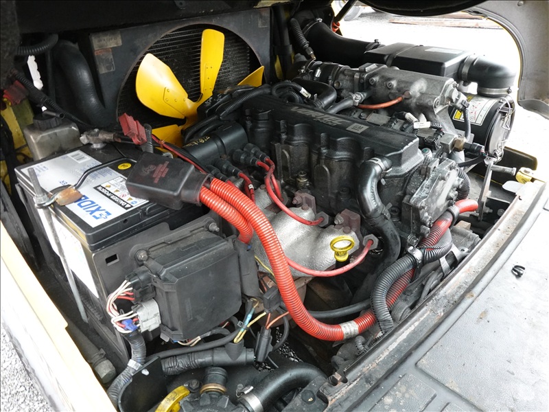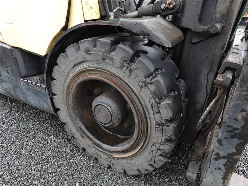 5,350 LB SOLID TIRE FORLIFT, 2-STAGEMAST, SIDE SHIFT, FORK POSITIONER, 4 CYL LPG, CAB (CHECK ENGINE LIGHT IS ON, COOLANT SYSTEM OVER PRESSURIZES, NEEDS REPAIRS)