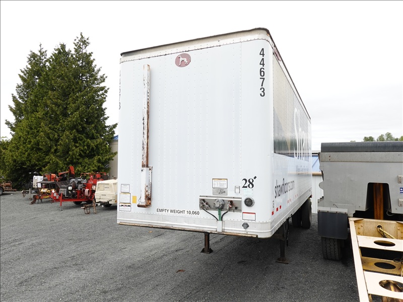 S/A, 28' 39,000 LB GVWR DRY VAN TRAILER, SPRING SUSPENSION, WINCH SYSTEM INSIDE, BARN DOORS, A/B, 11R22.5