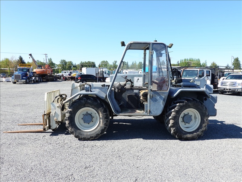 4X4X4 5,000 LB TELESCOPIC FORKLIFT, 18'9" LIFT HEIGHT, 2 SECTION BOOM, LEVELING/SWIVEL CARRIAGE, PERKINS 700 SERIES DIESEL, CANOPY, 380/75R20