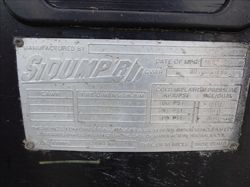 TRI/A 48' OAL 80,000 LB GVWR 36' STEEL BOX SIDE DUMP TRAILER, SIDEKICK (2) TARPING SYSTEM, PUSH BLOCK, AIR SUSPENSION, A/B, 11R22.5 (**DISCLOSURE: FRAME BROKEN)
