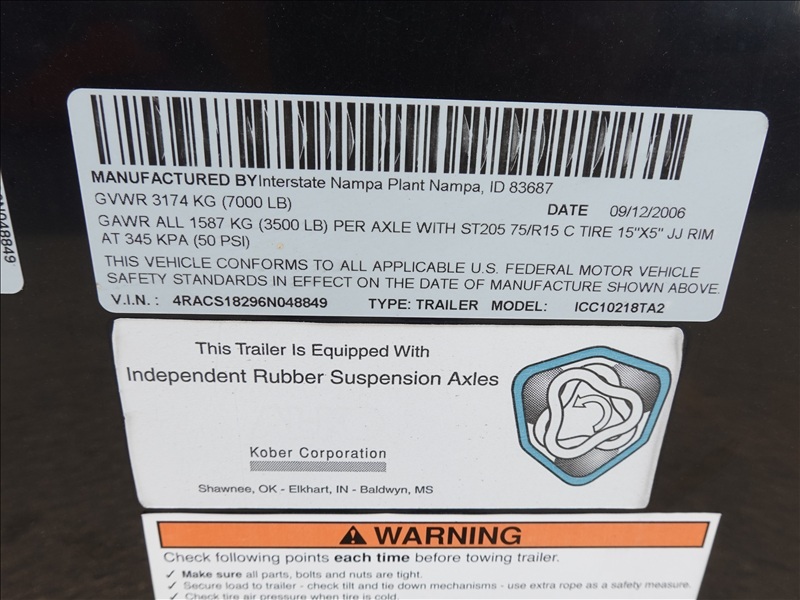 T/A, 18' X 8' ENCLOSED UTILITY TRAILER, TORSION SUSPENSION, ELECT BRAKES, 205/75R15