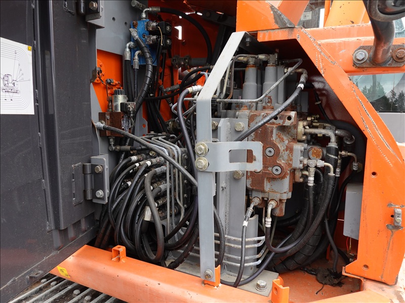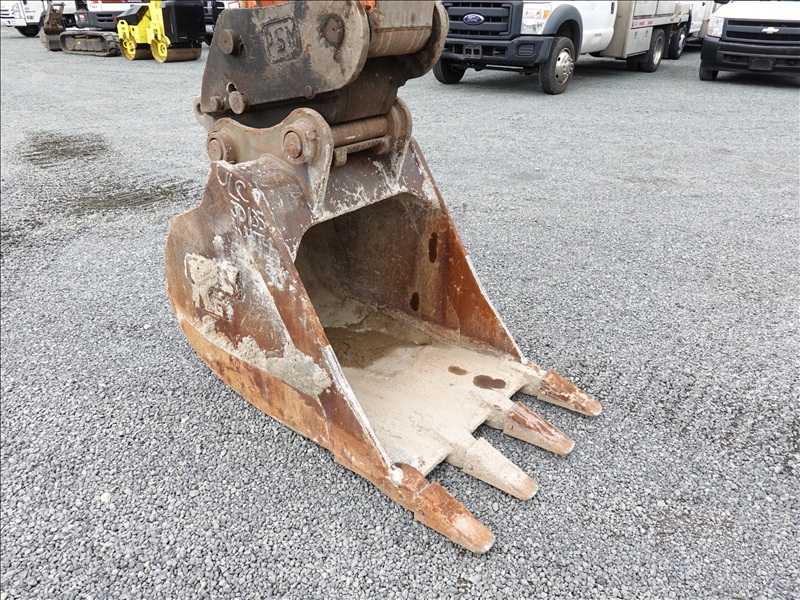 HYDRAULIC EXCAVATOR, 88 HP ISUZU CC-4BG1T, 9'11" STICK, 25" BUCKET, PSM PIN GRABBER, AUX HYD, A/C CAB (FRONT GLASS/FRAME MISSING)