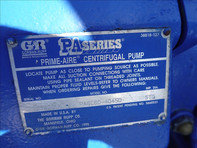 S/A, TRAILER MOUNTED 6' WATER PUMP, JOHN DEERE 4 CYL DIESEL, AUTO START CONTROL