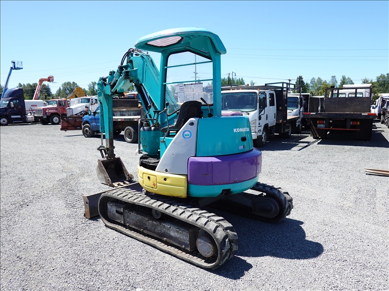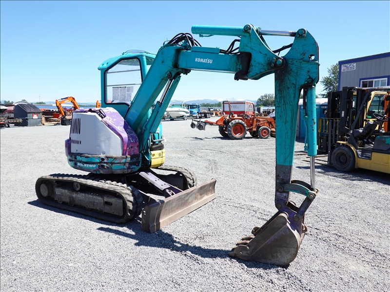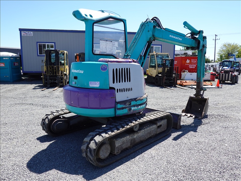 MINI EXCAVATOR, 3 CYL DIESEL, OFF SET BOOM, 18" BUCKET, BLADE, RUBBER TRACKS, CANOPY