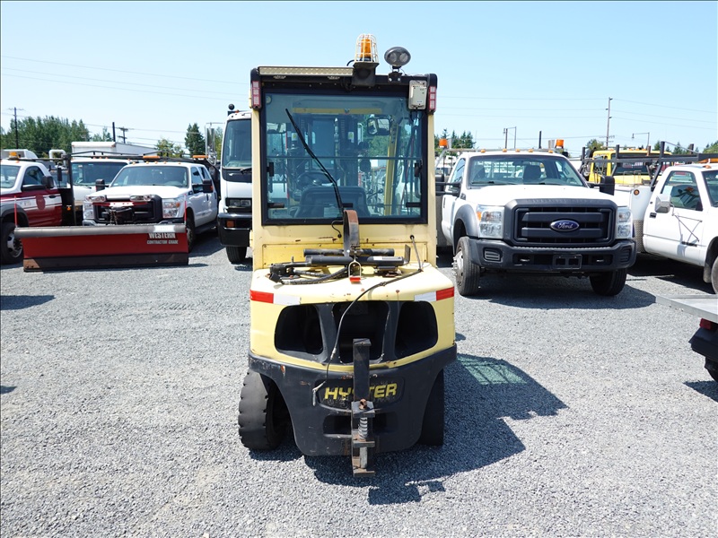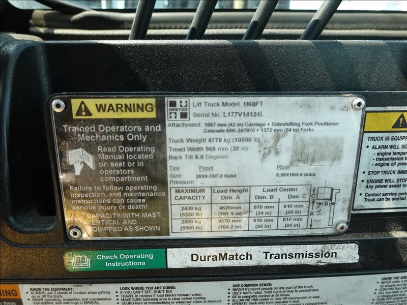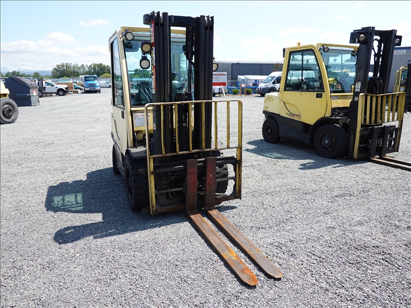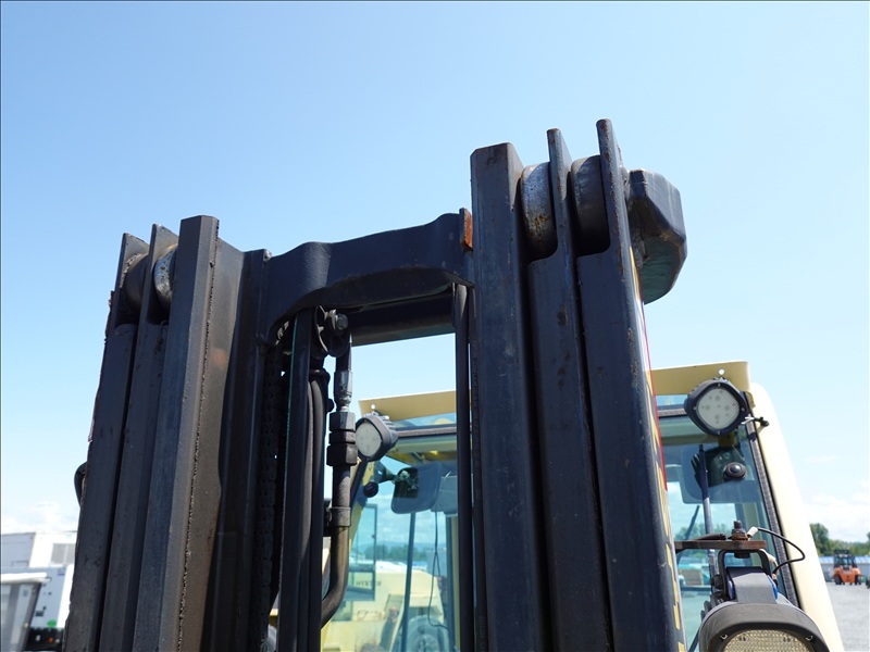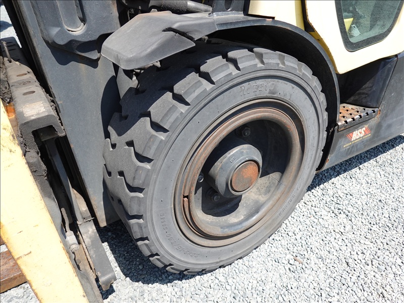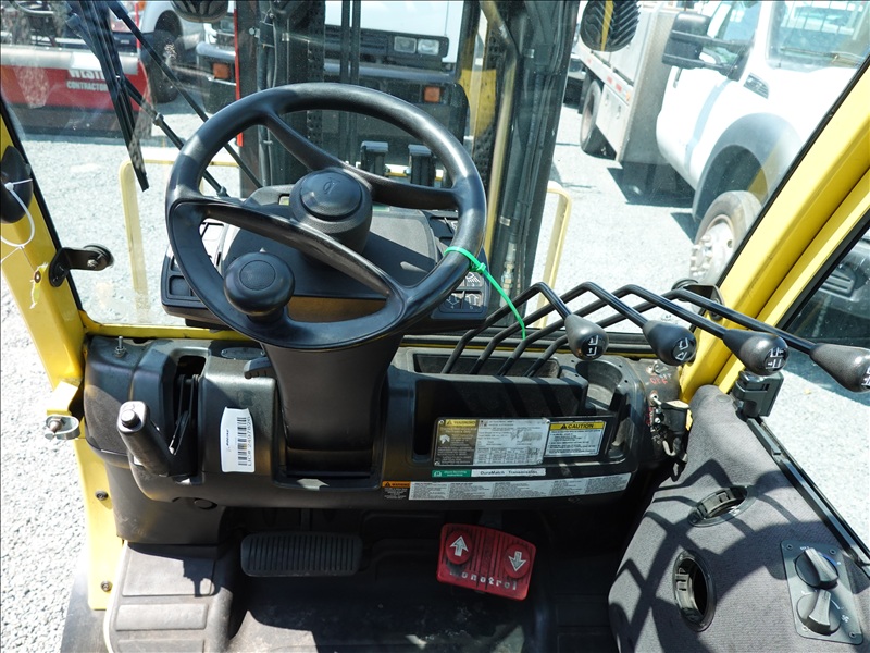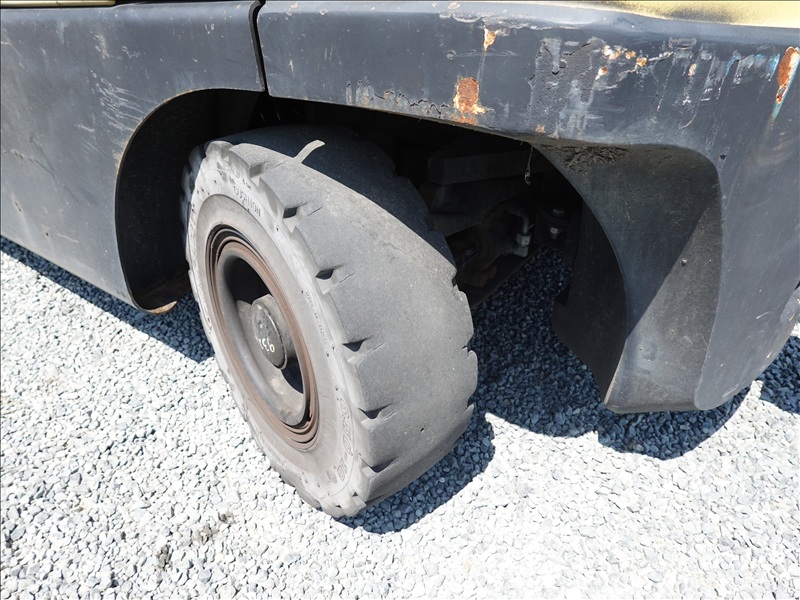 5,350 LB SOLID TIRE FORKLIFT, 181.9" FORK HEIGHT, 3-STAGE MAST, SIDE SHIFT FOR POSITIONER, FTC, 4 CYL LPG, CAB (NO PROPANE TANK)