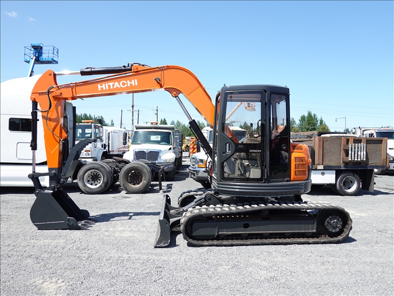 HYDRAULIC EXCAVATOR, NISSAN 4 CYL DIESEL, 25" BUCKET,. HYD THUMB, BLADE, RUBBER TRACKS, CAB