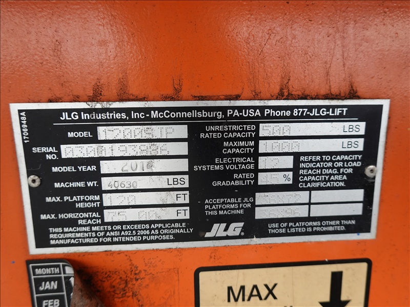 4WD TELESCOPIC BOOM LIFT, 120' PLATFORM HEIGHT, 75' HORIZONTAL REACH, 1000 LB CAPACITY, A/C RECEPTICAL AT PLATFORM, DEUTZ TCD 2.9L4