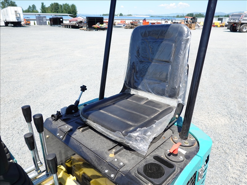 MINI EXCAVATOR, 420 CC GAS ENGINE, 16" BUCKET, HYDRAULIC THUMB, AUX HYD, BLADE, RUBBER TRACKS, CANOPY