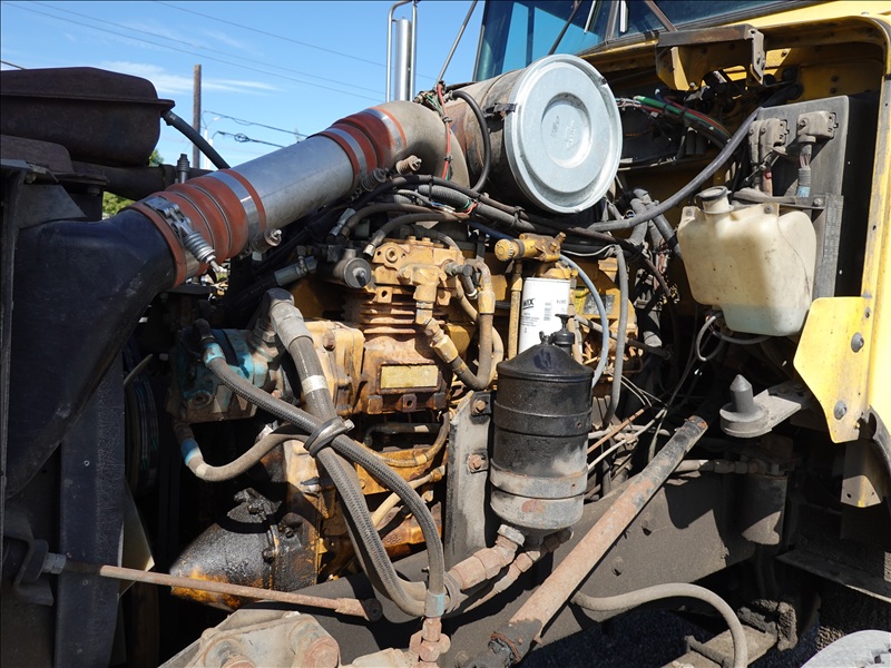 T/A, DUMP TRUCK, 15' STEEL BOX, 350 HP CAT 3406, 8LL, SPRING BEAM SUSPENSION, 203" W/B, 16,000 LB FRONT, 38,000 LB REARS, PLUMBED FOR PUP, A/B