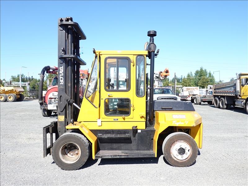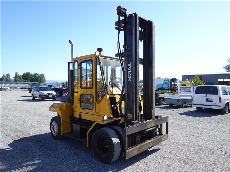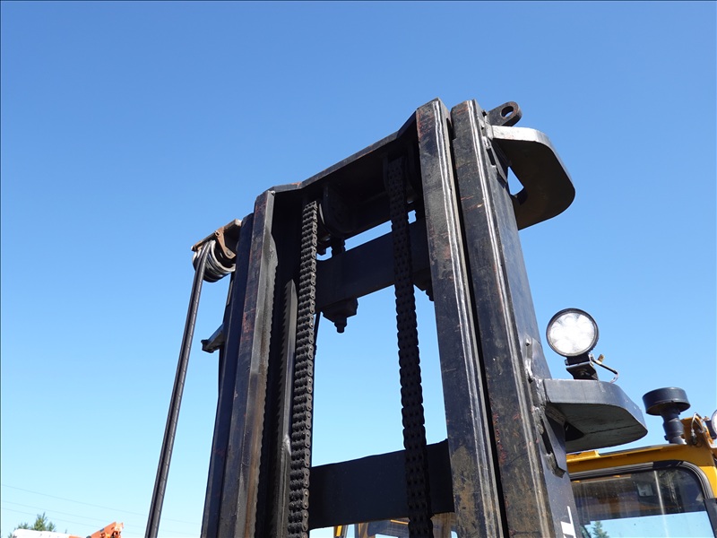 11,000 LB DUAL SOLID TIRE FORKLIFT, 216" LIFT HEIGHT, 2-STAGE MAST, SIDESHIFT, CUMMINS 4 CYL DIESEL, CAB (**NO FORKS**)
