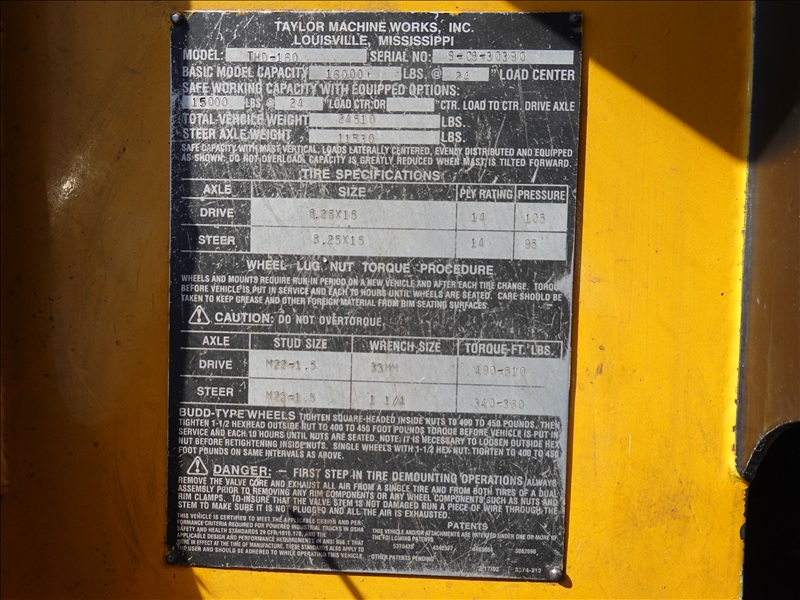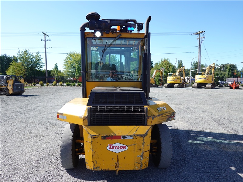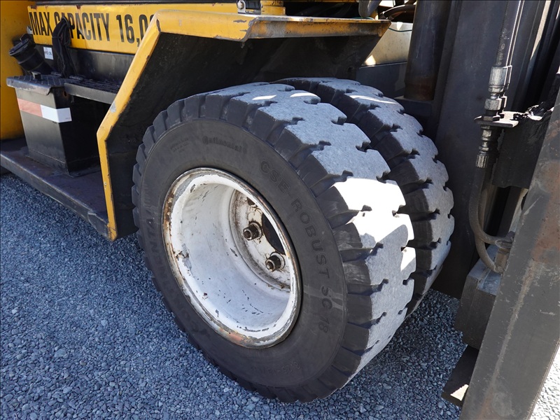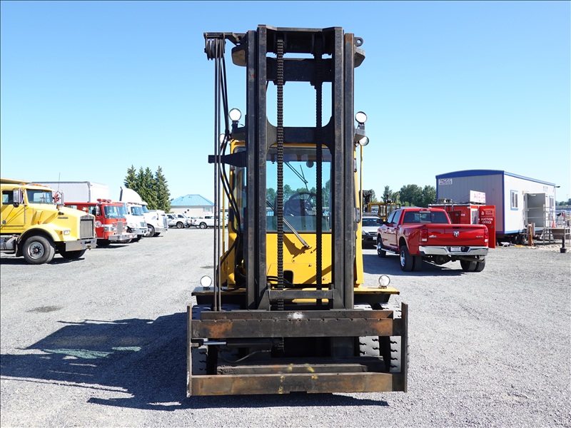 11,000 LB DUAL SOLID TIRE FORKLIFT, 216" LIFT HEIGHT, 2-STAGE MAST, SIDESHIFT, CUMMINS 4 CYL DIESEL, CAB (**NO FORKS**)