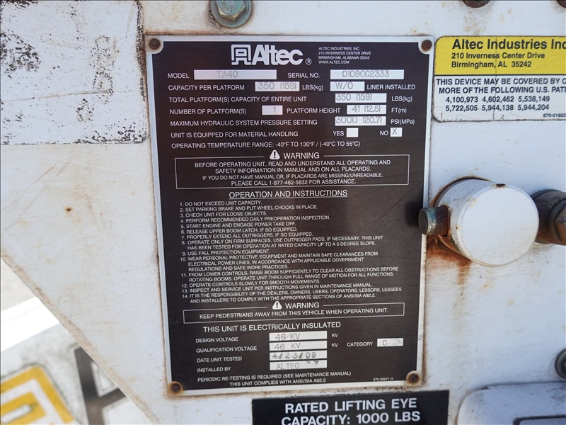 BUCKET TRUCK, ALTEC TA40, 41', 350 LB, MAXXFORCE, AUTO, A/B