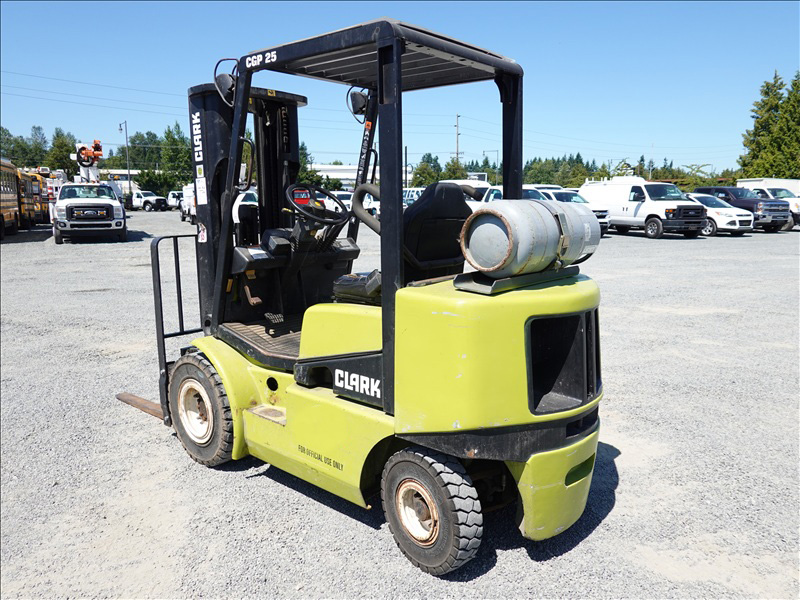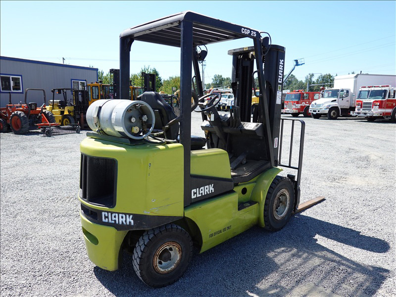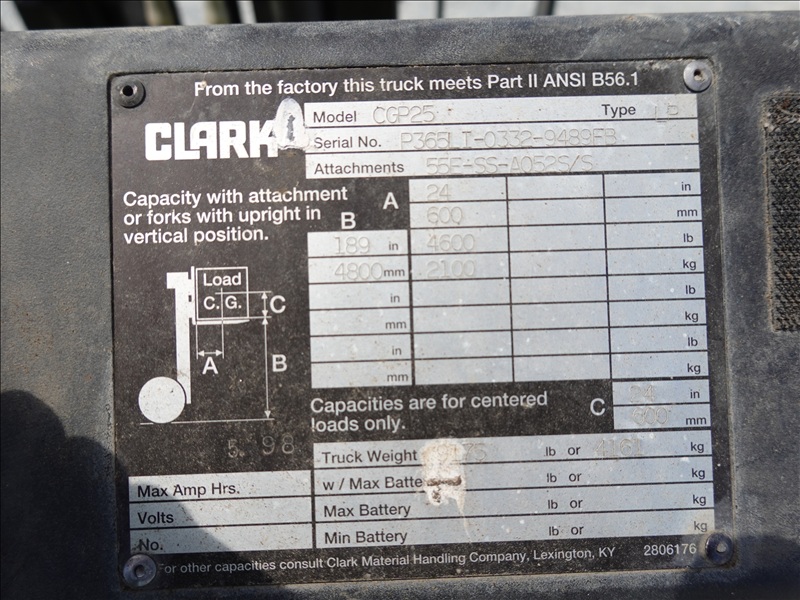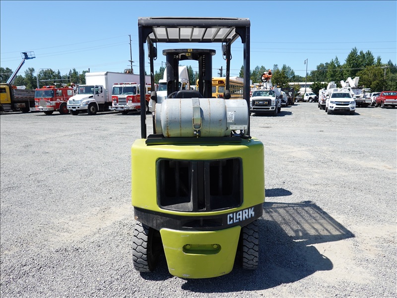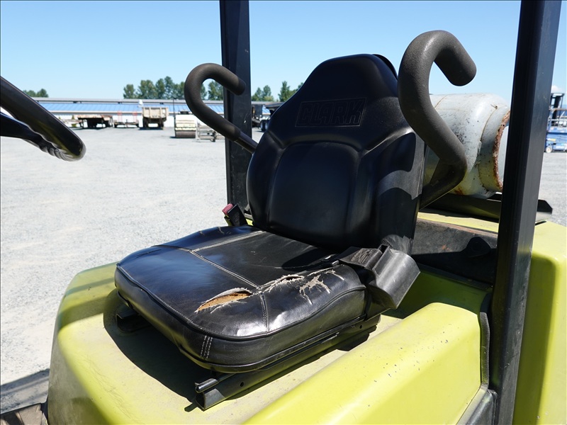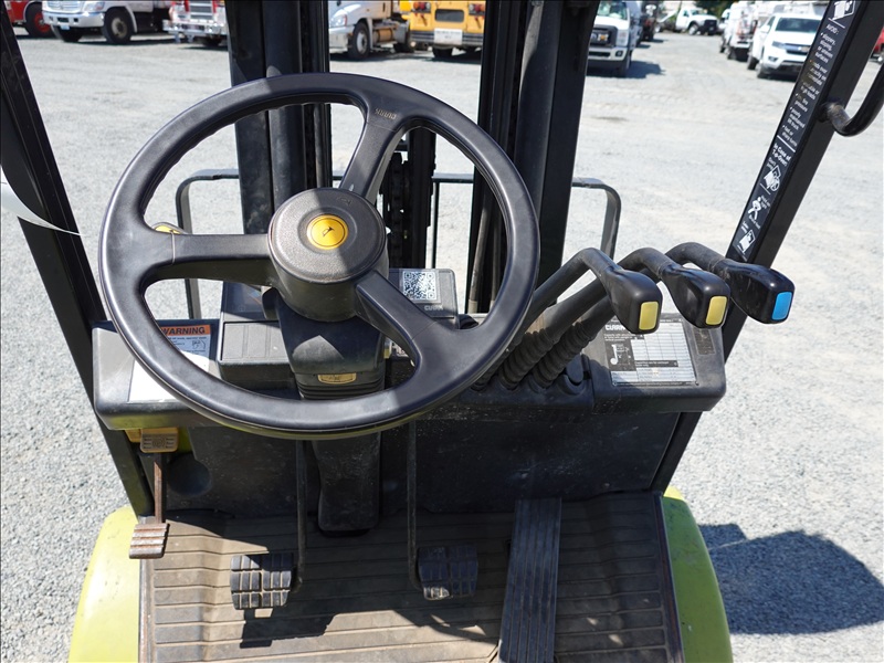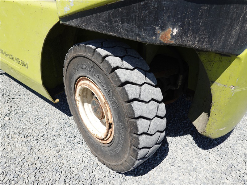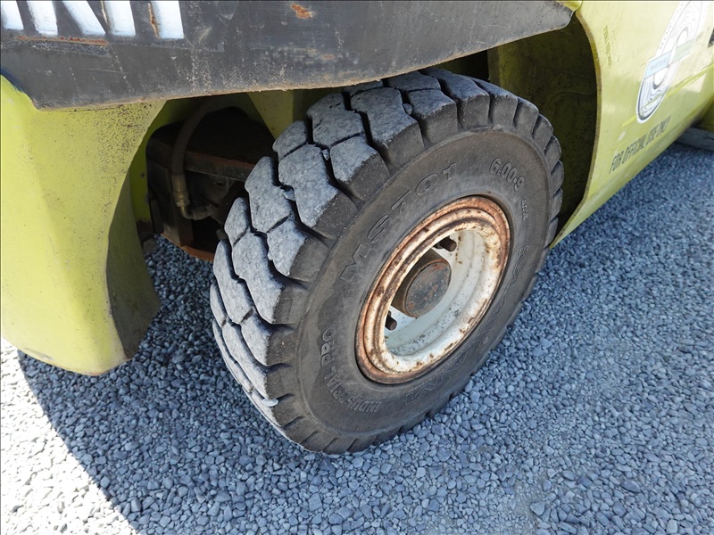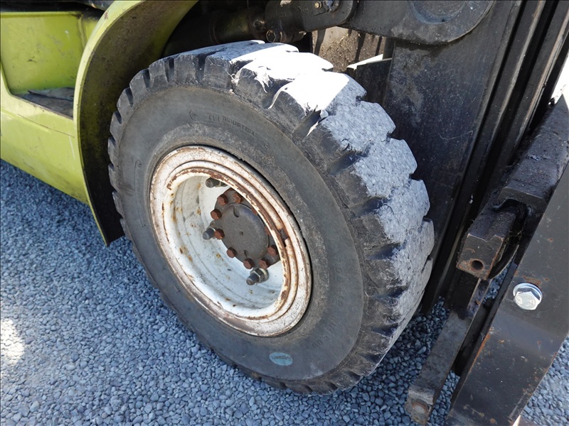 4,600 LB SOLID TIRE FORKLIFT, 189" FORK HEIGHT, 3-STAGE MAST, SIDE SHIFT, 4 CYL LPG
