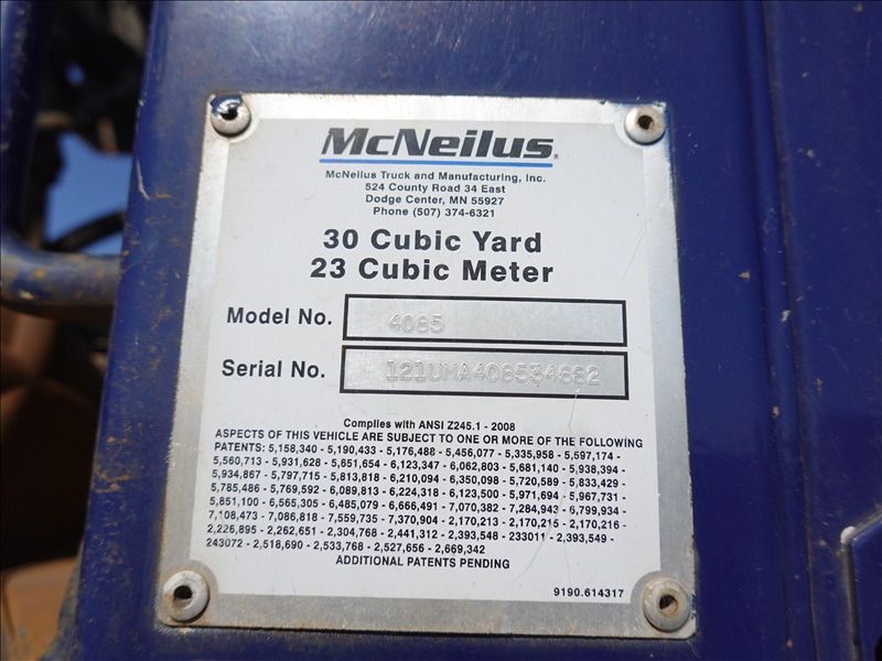 T/A, REFUSE TRUCK, MCNEILUS 4085 FRONT LOADER, CUMMINS ISL, AUTO, A/B