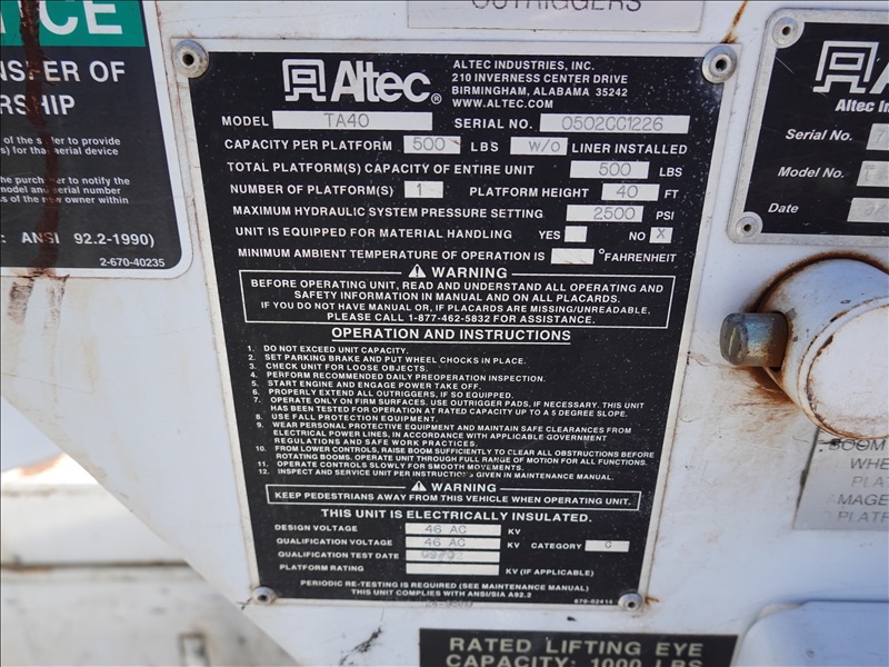 BUCKET TRUCK, ALTER TA40, 40', 500 LB, CUMMINS ISC, AUTO, A/B