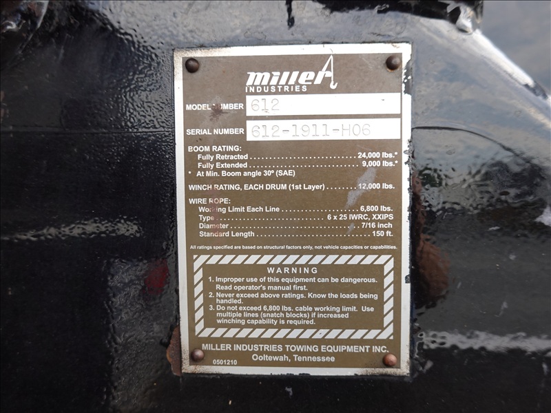 TWIN LINE WRECKER, MILLER 612 BOOM, RAMSEY WINCH, UNDERLIFT, DT466, AUTO, A/B