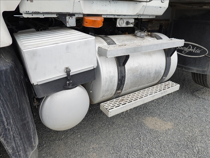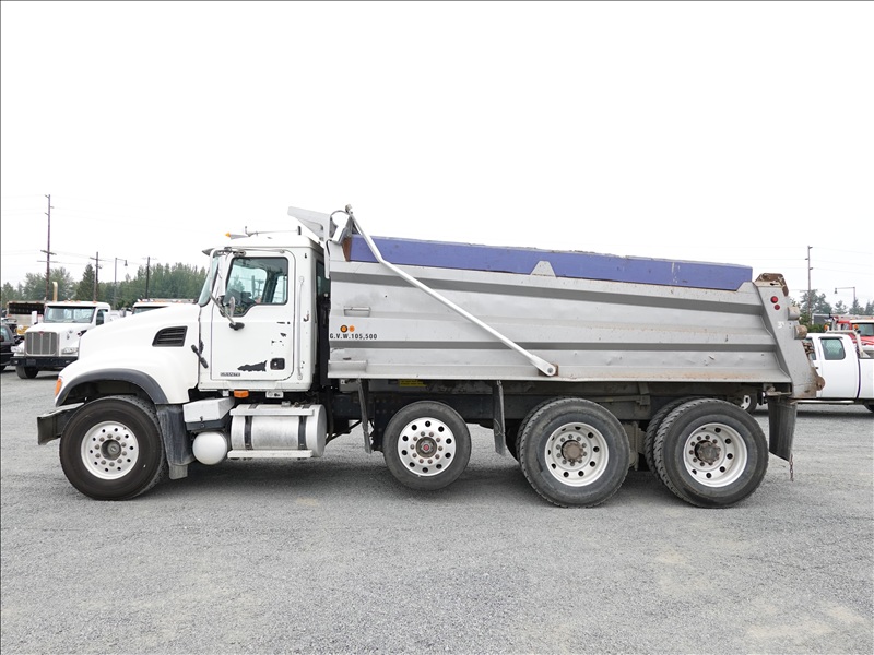 TRI/A, DUMP TRUCK, 16' STEEL BOX, TARP SYSTEM, 460 HP AI460, 18 SPD, CAMELBACK SUSPENSION, 219" W/B, 18,000 LB FRONT, 44,00 LB REARS, DROP AXLE, PLUMBED FOR PUP, A/B