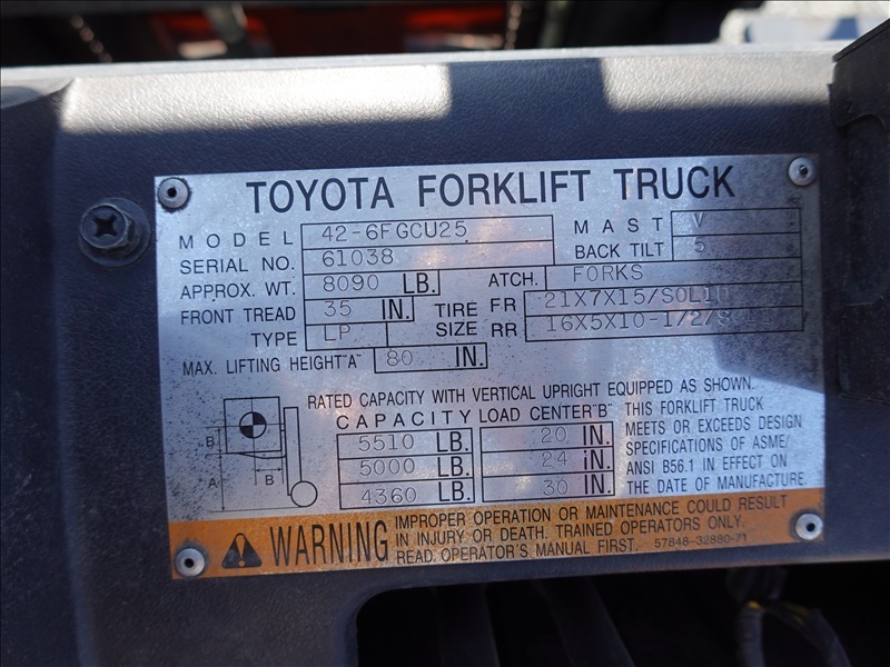 5,510 LB HRT FORKLIFT, 80" FORK HEIGHT, 2-STAGE MAST, 4 CYL LPG