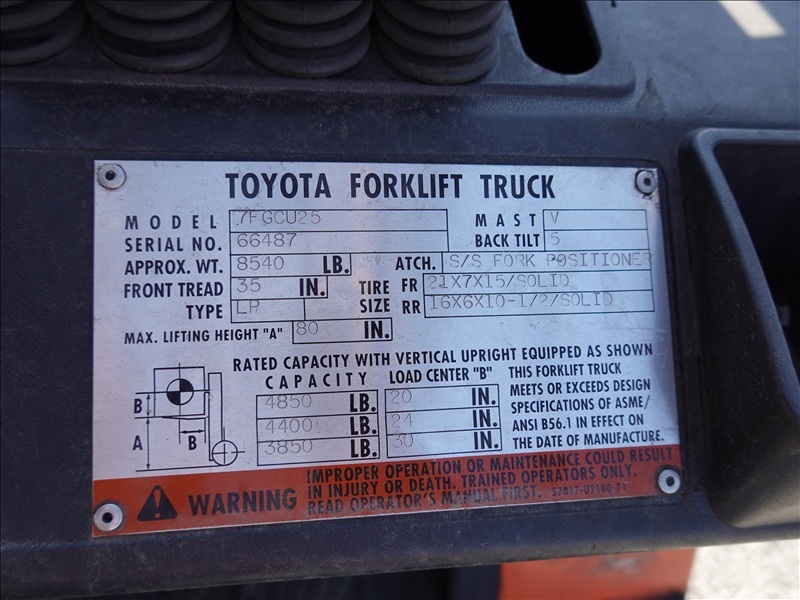 4,850 LB HRT FORKLIFT, 80" FORK HEIGHT, 2-STAGE MAST, 4 CYL LPG, CANOPY (**SEE PHOTO FOR HOUR METER**)