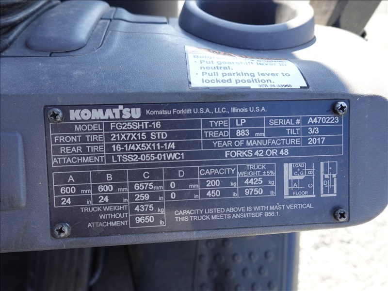5,000 LB HRT FORKLIFT, 258" FORK HEIGHT, 4-STAG4E MAST, 4 CYL LPG, CANOPY