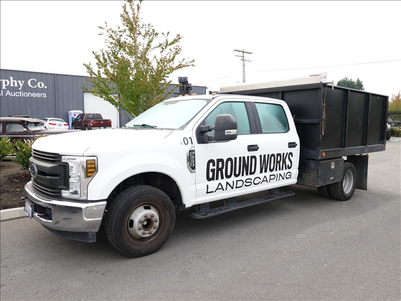 CREW CAB, 10' FLAT BED/DUMP, TARP SYSTEM, V8, AUTO