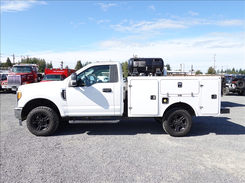 SERVICE BODY, (2) 15 GALLON OIL TANKS, AIR COMPRESSOR, (4) HOSE REELS, PUMPS, 4WD