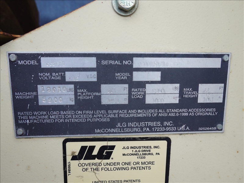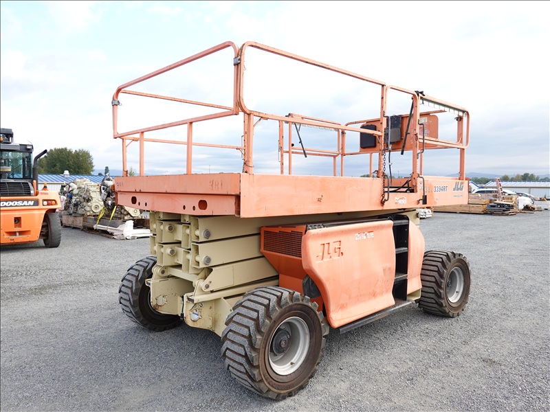4X4 SCISSOR LIFT, 33' PLATFORM HEIGHT, 2,250 LB CAPACITY, A/C RECEPTICAL AT PLATFORM, 4 CYL LPG