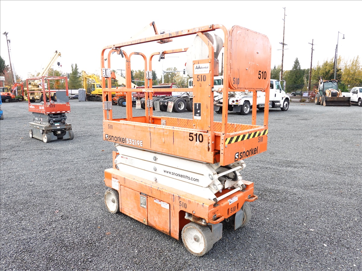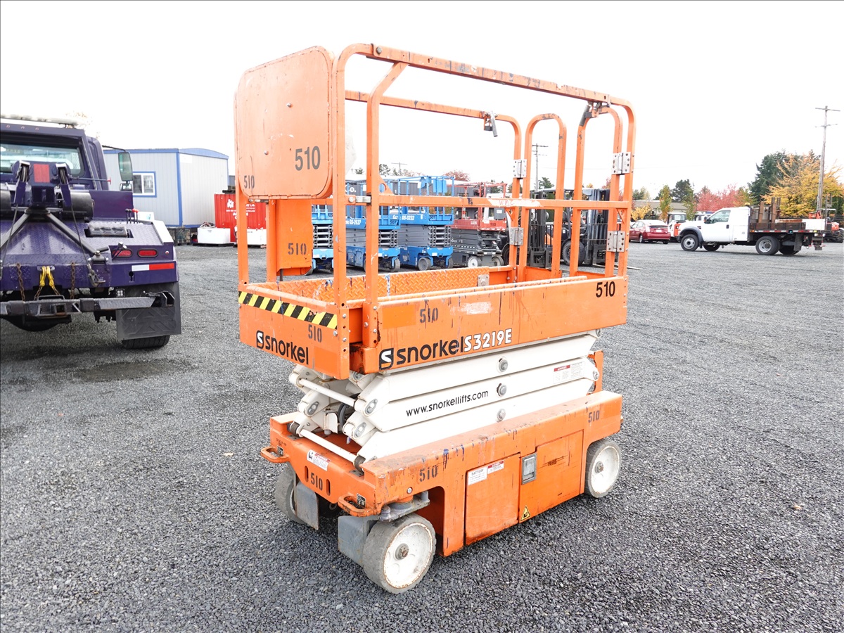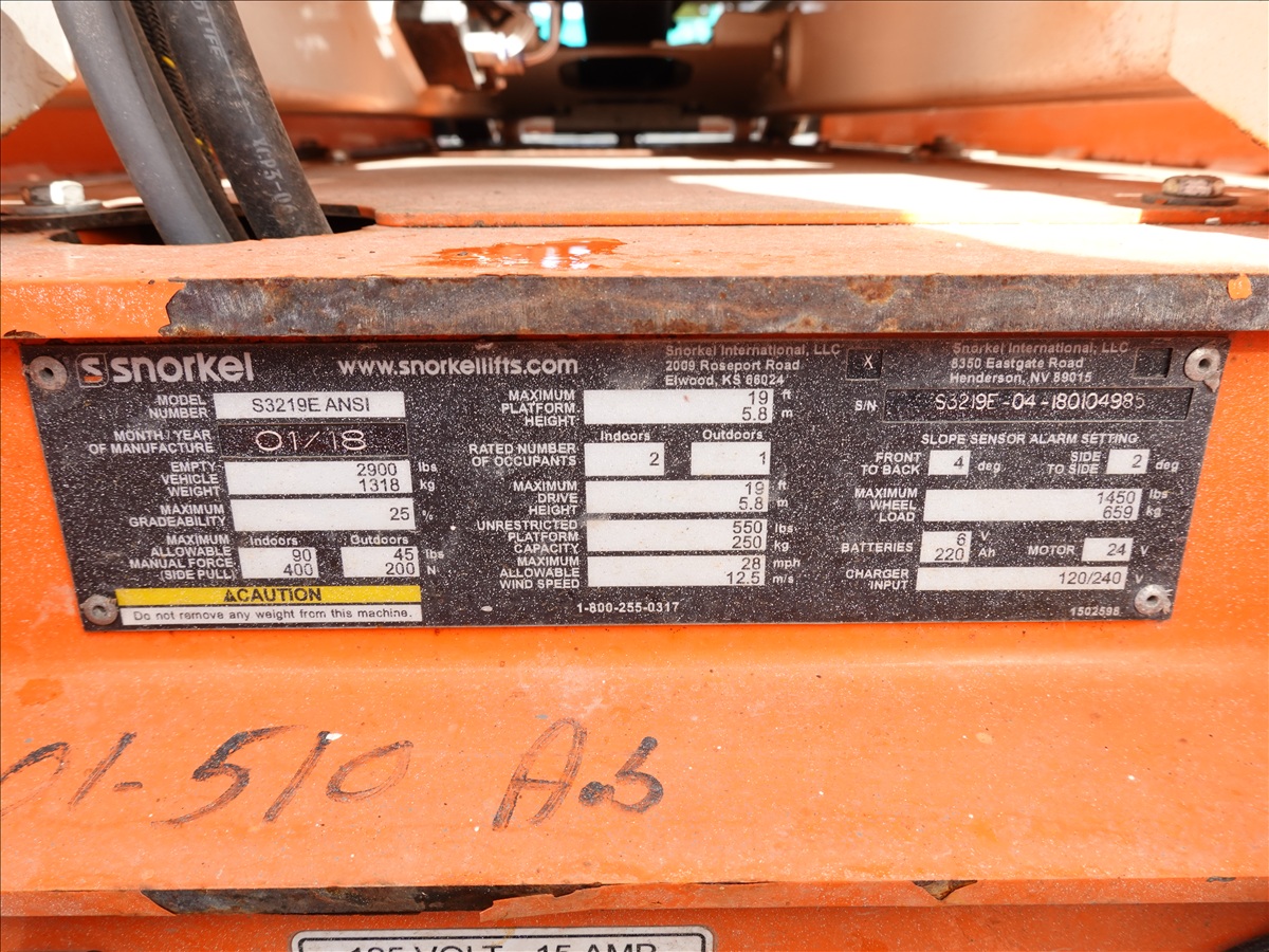 SCISSOR LIFT, 19' PLATFORM HEIGHT, 550 LB CAPACITY, A/C RECEPTICAL AT PLATFORM
