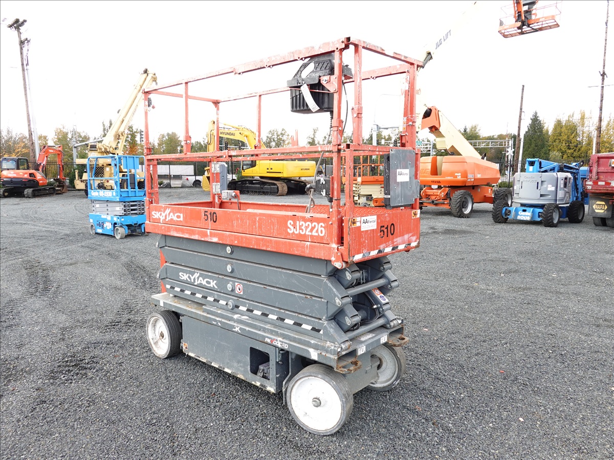 SCISSOR LIFT, 25' PLATFORM HEIGHT, 500 LB CAPACITY, A/C RECEPTICAL AT PLATFORM