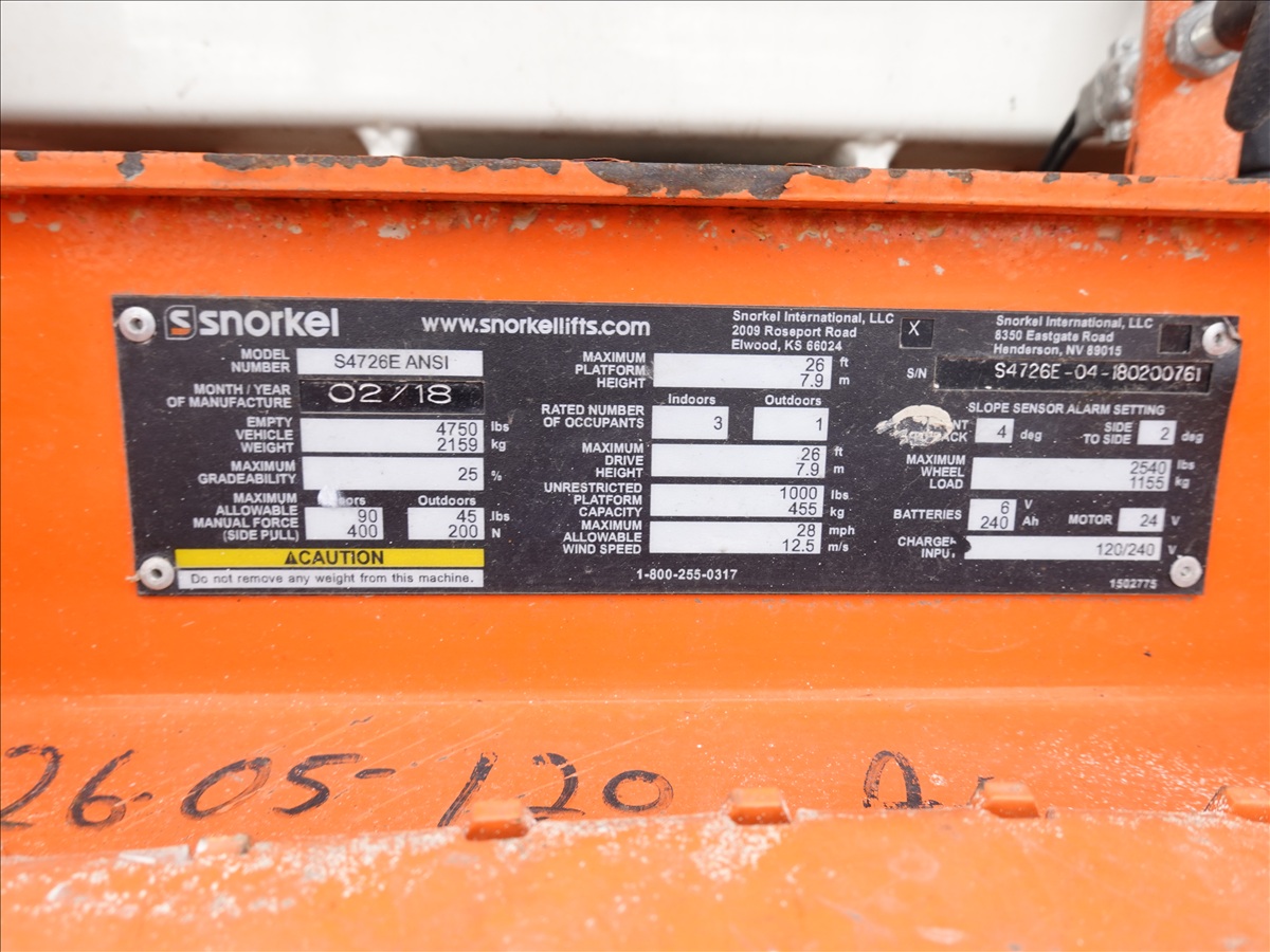 SCISSOR LIFT, 26' PLATFORM HEIGHT, 1,000 LB CAPACITY