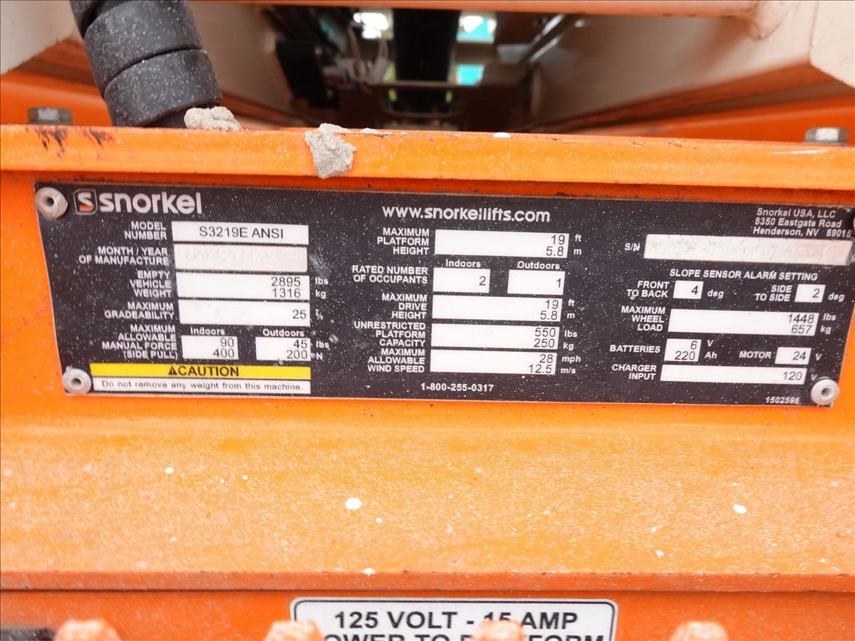 SCISSOR LIFT, 19' PLATFORM HEIGHT, 550 LB CAPACITY, A/C RECEPTICAL AT PLATFORM
