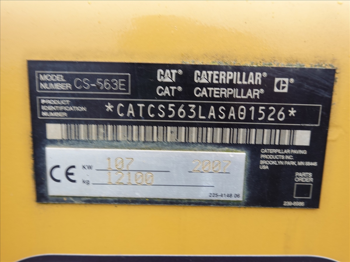 2007 CAT CS563E SMOOTH DRUM VIBRATORY ROLLER