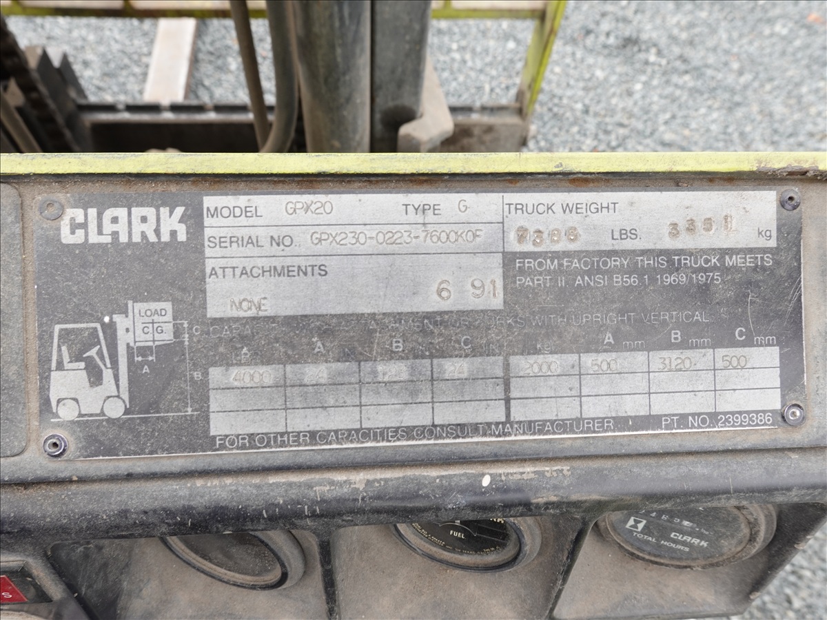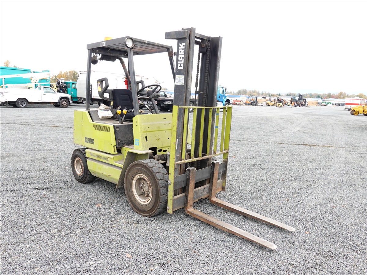 4,000 LB PNEUMATIC TIRE FORKLIFT, 123" FORK HEIGHT, 2-STAGE MAST, 4 CYL GAS