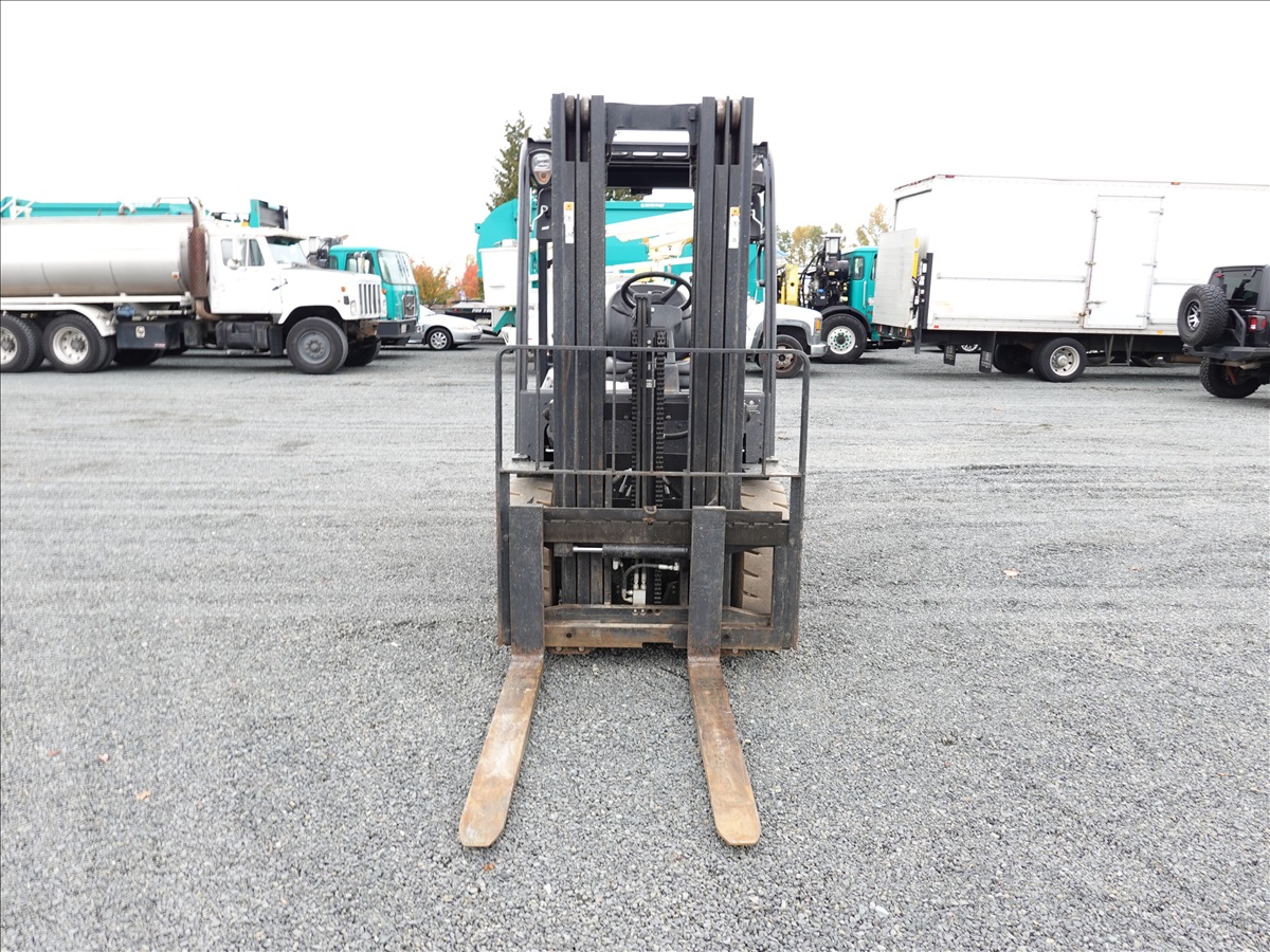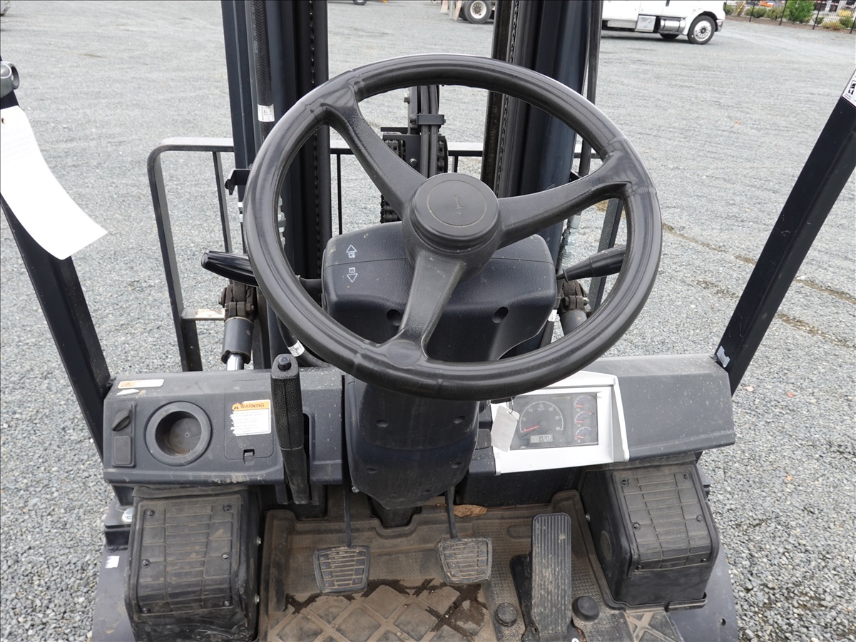5,500 LB SOLID TIRE FORKLIFT, 189" FORK HEIGHT, 3-STAGE MAST, SIDE SHIFT, 47" FORKS, 4 CYL LPG