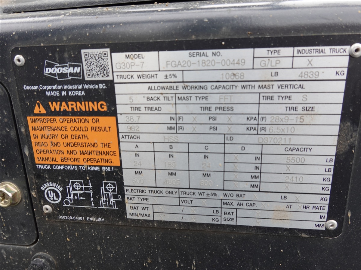 2017 DOOSAN G30P-7 FORKLIFT LPG