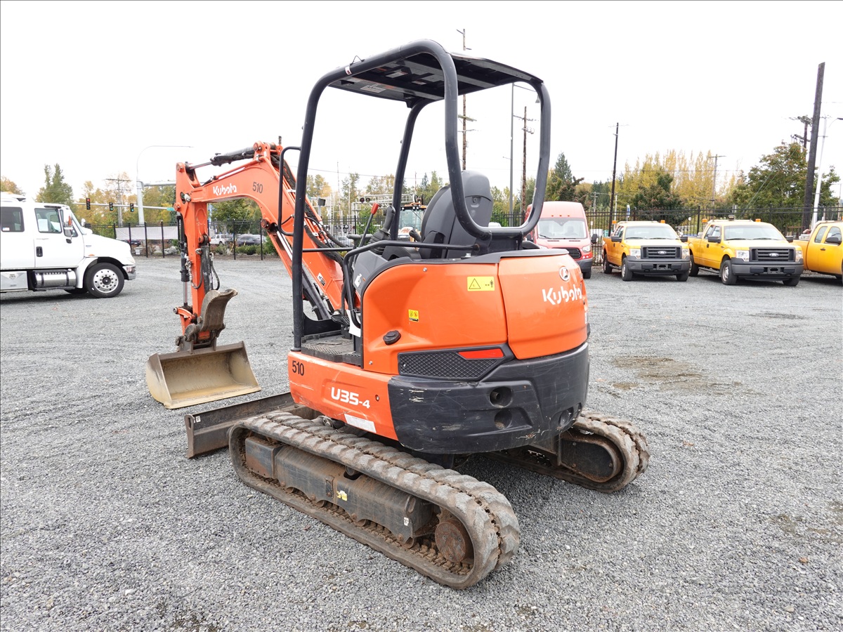 MINI EXCAVATOR, 24 HP D1703-M-DI-EF03, SWING BOOM, QC 34" CLEAN OUT BUCKET, HYD THUMB, BLADE, RUBBER TRACKS, CANOPY