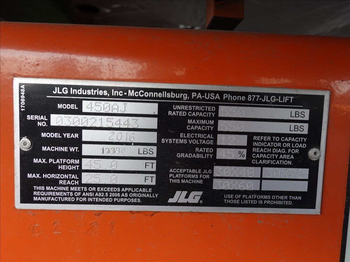 4WD ARTICULATED BOOM LIFT, 45' PLATFORM HEIGHT, 25' HORIZONTAL REACH, 550 LB CAPACITY, A/C RECEPTICAL AT PLATFORM