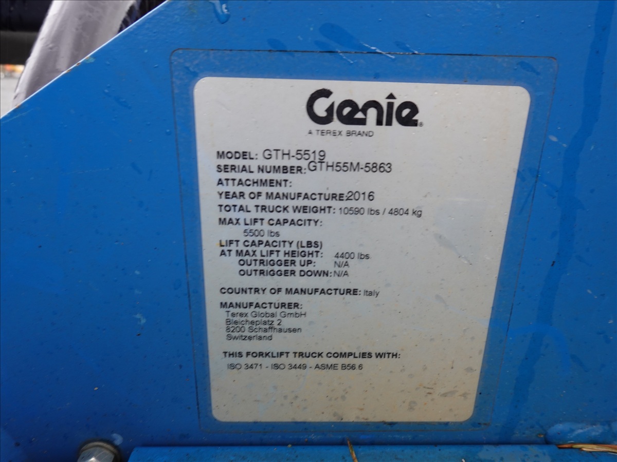 4X4X4 5,500 LB TELESCOPIC FORKLIFT, 19' LIFT HEIGHT, 2-SECTION BOOM, AUX HYD, LEVELING CARRIAGE, DEUTZ TD2.9L4 (**DIGITAL SCREEN INOPERABLE, HOURS UNKNOWN**)
