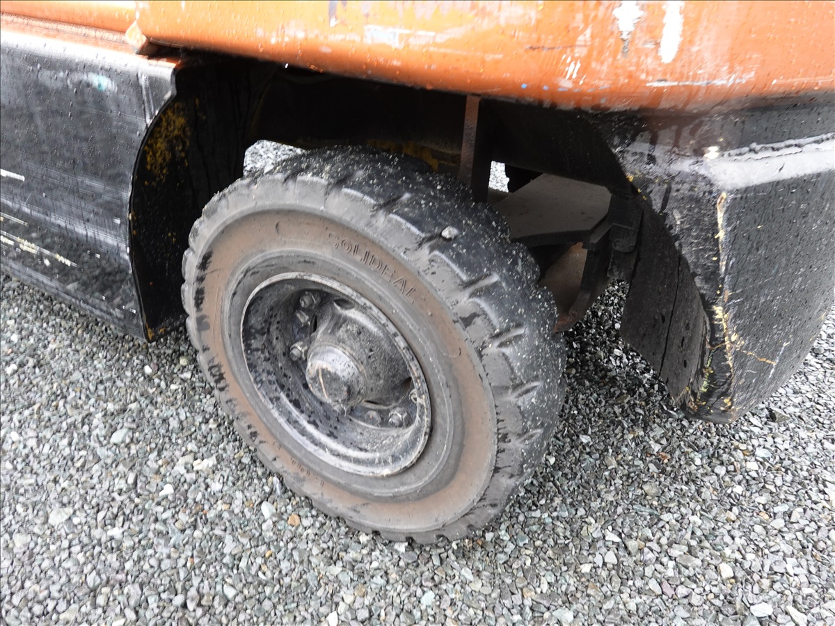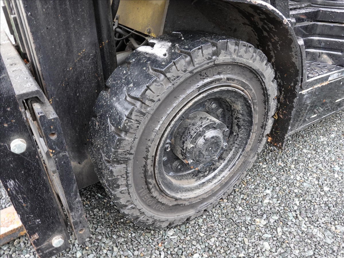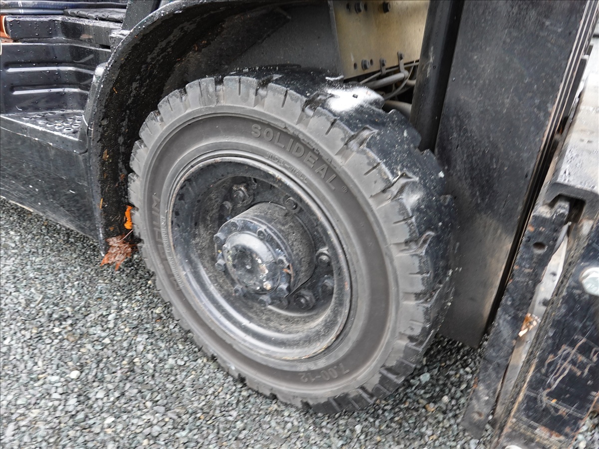 4,400 LB SOLID TIRE FORKLIFT, 188" FORK HEIGHT, 3-SATGE MAST, SIDE SHIFT, 96" FORK EXTENSIONS, 4 CYL LPG