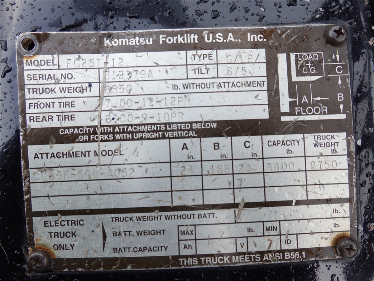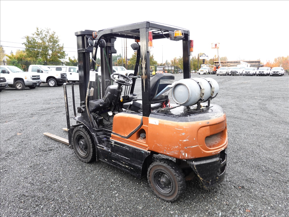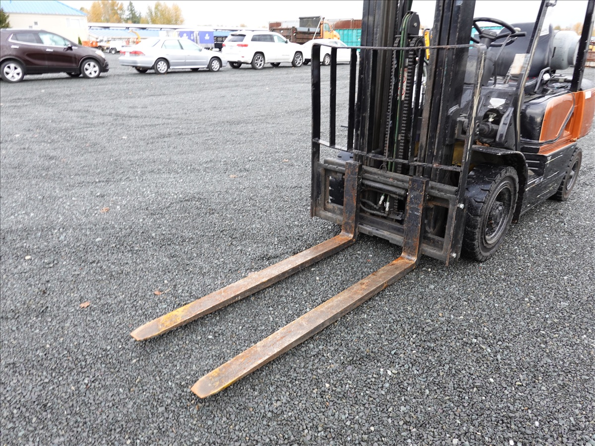 4,400 LB SOLID TIRE FORKLIFT, 188" FORK HEIGHT, 3-SATGE MAST, SIDE SHIFT, 96" FORK EXTENSIONS, 4 CYL LPG