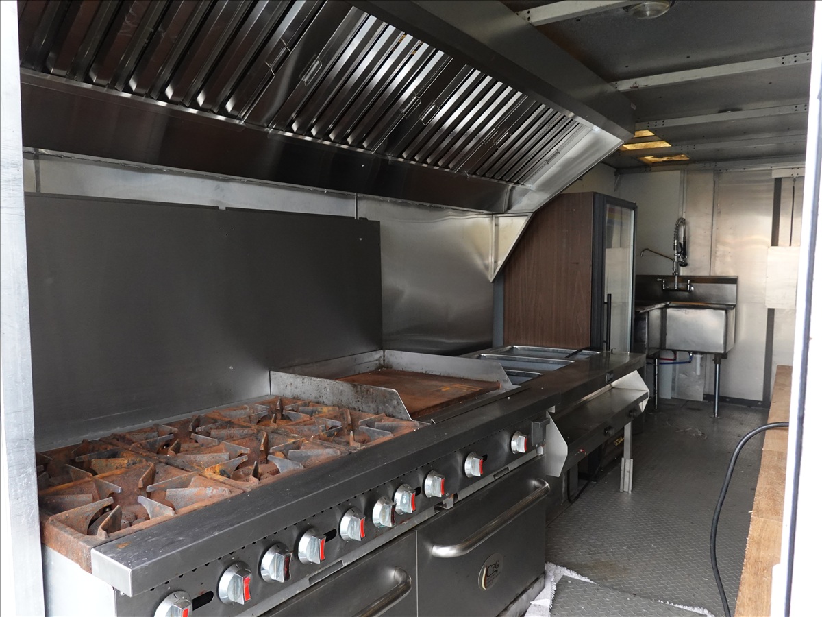 CONCESSION FOOD SERVICE TRUCK, V8, AUTO, GRIDDLE, 6-BURNER STOVE TOP, 3-COMPARTMENT FOOD WARMER, (2) REFRIGERATED PREP TABLES, HAND WASH STATION, WATER HEATER