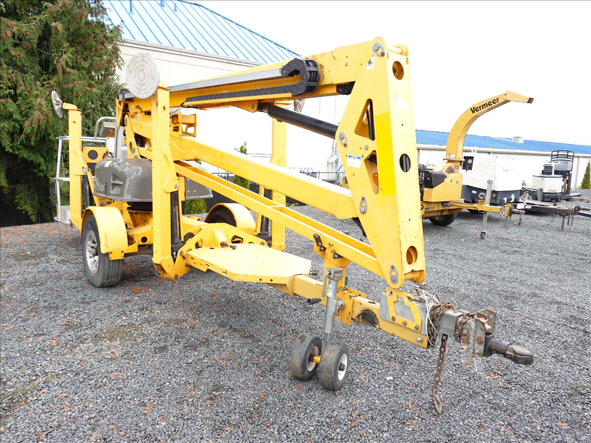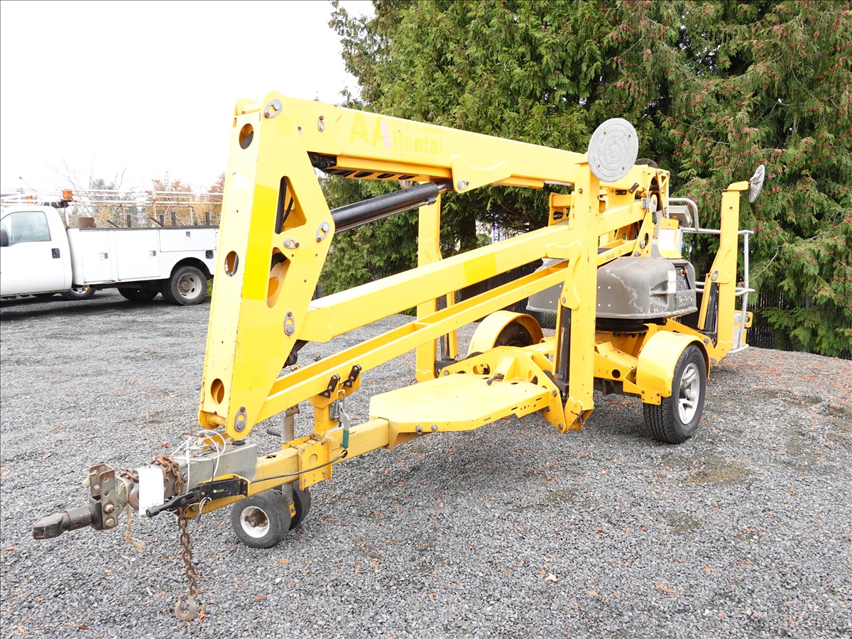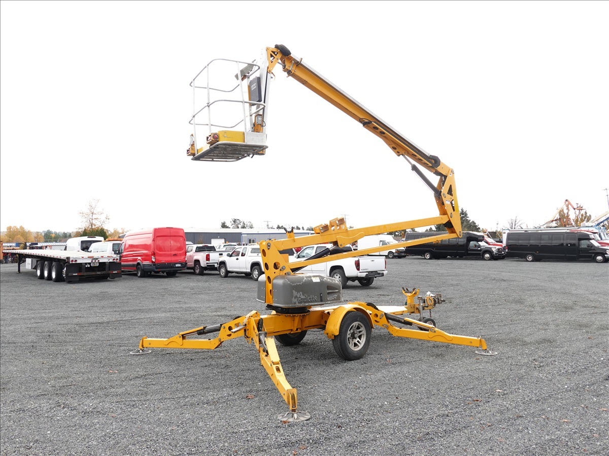 TOWABLE ARTICULATED BOOM LIFT, 45' PLATFORM HEIGHT, 27' HORIZONTAL REACH, 500 LB CAPACITY, PLUMBED FOR AIR & WATER, 24V DC (**TOTAL HOURS: 6,356 - RUN HOURS: 386**)