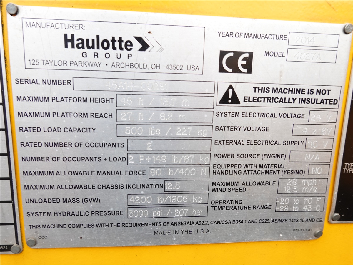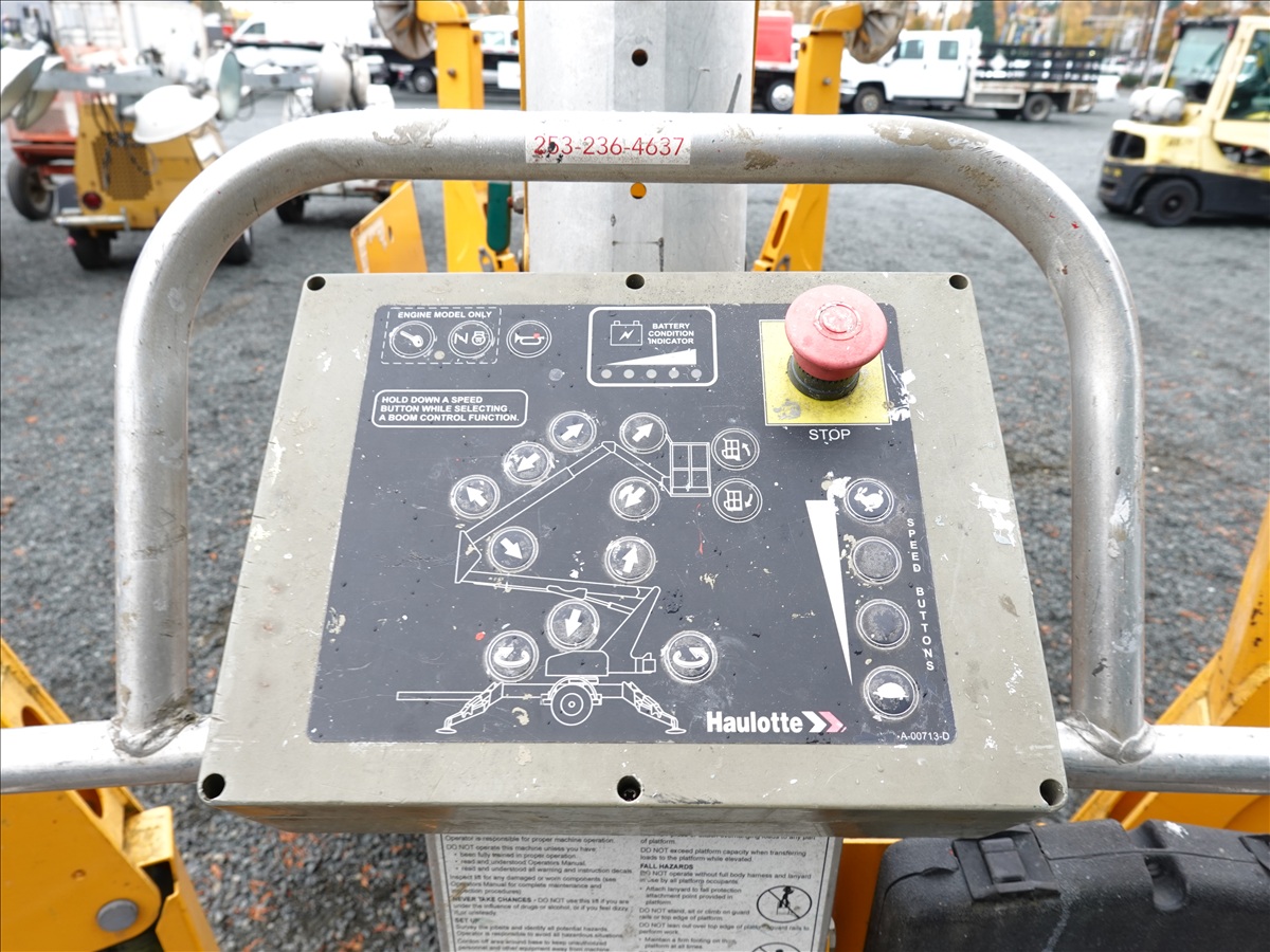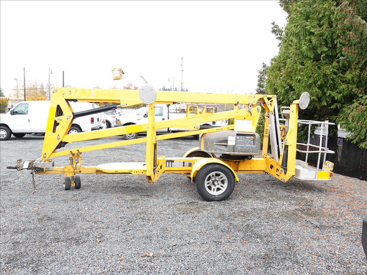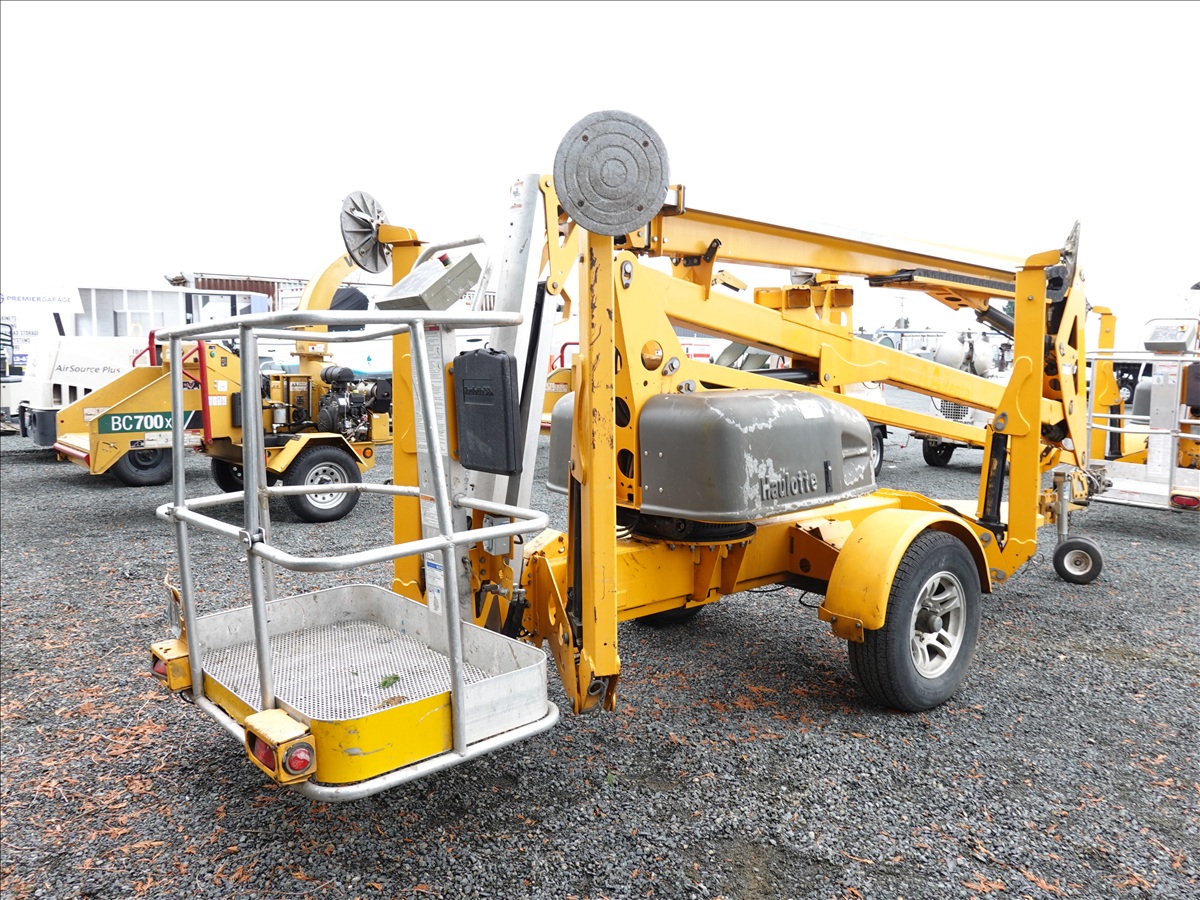 TOWABLE ARTICULATED BOOM LIFT, 45' PLATFORM HEIGHT, 27' HORIZONTAL REACH, 500 LB CAPACITY, PLUMBED FOR AIR & WATER, 24V DC (**TOTAL HOURS: 6,356 - RUN HOURS: 386**)