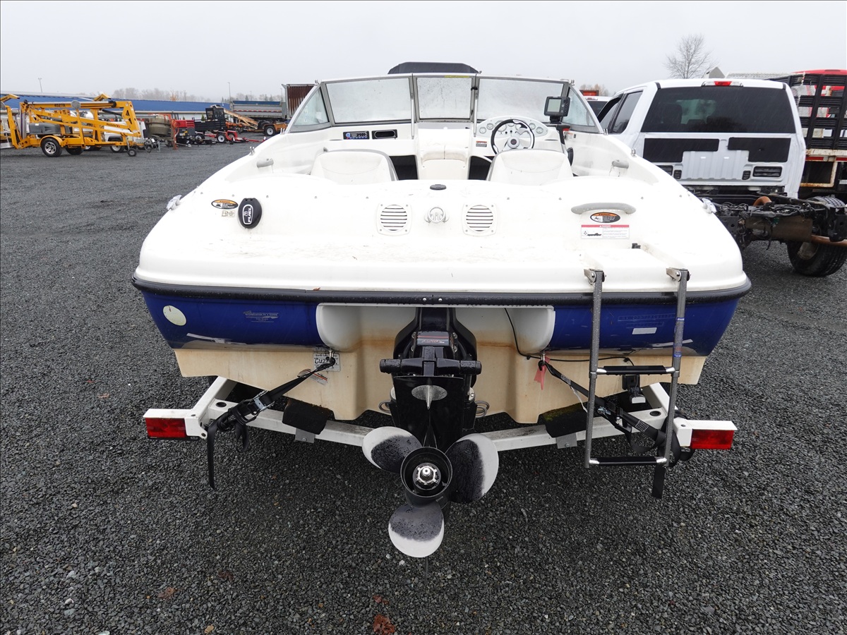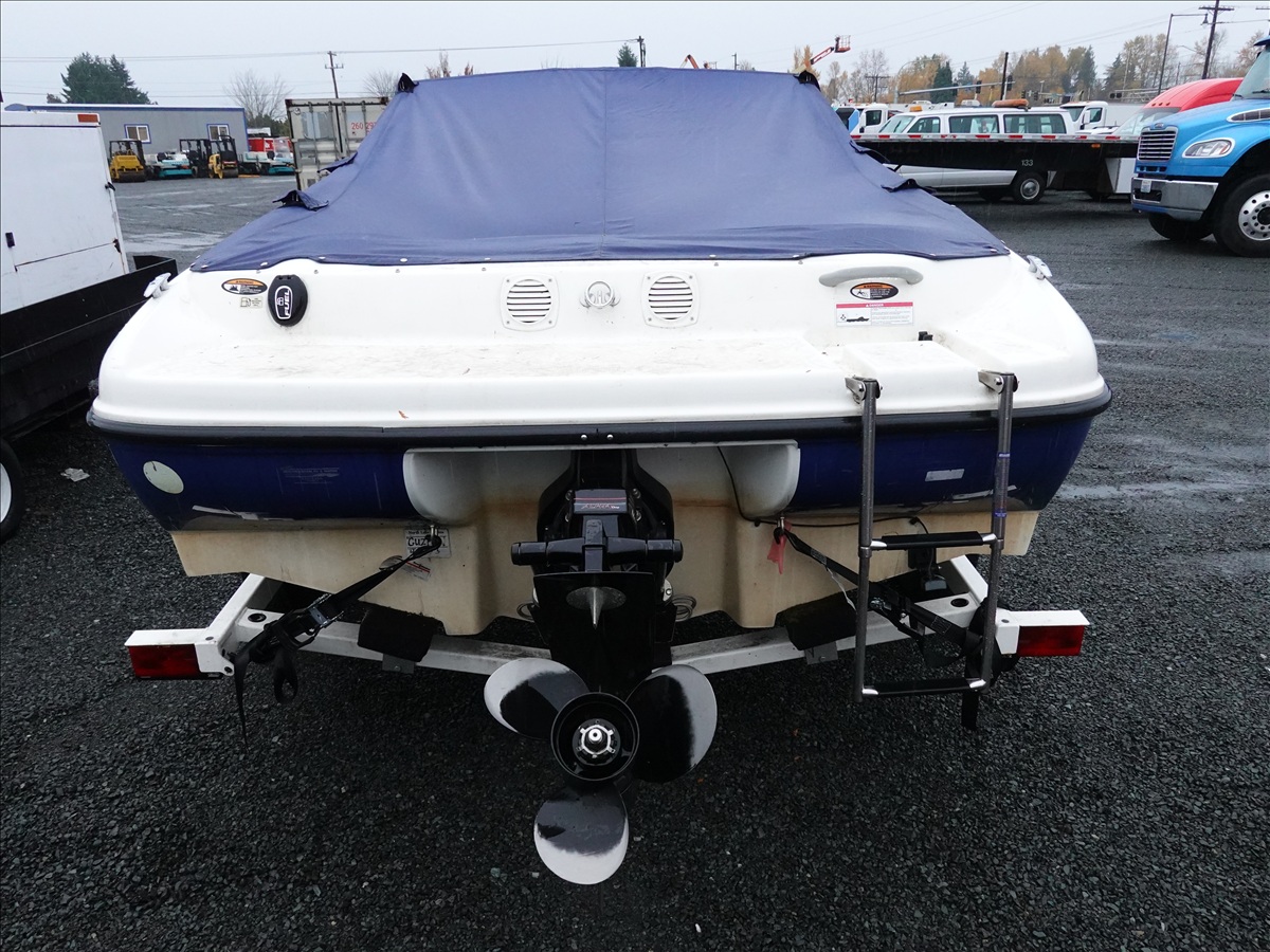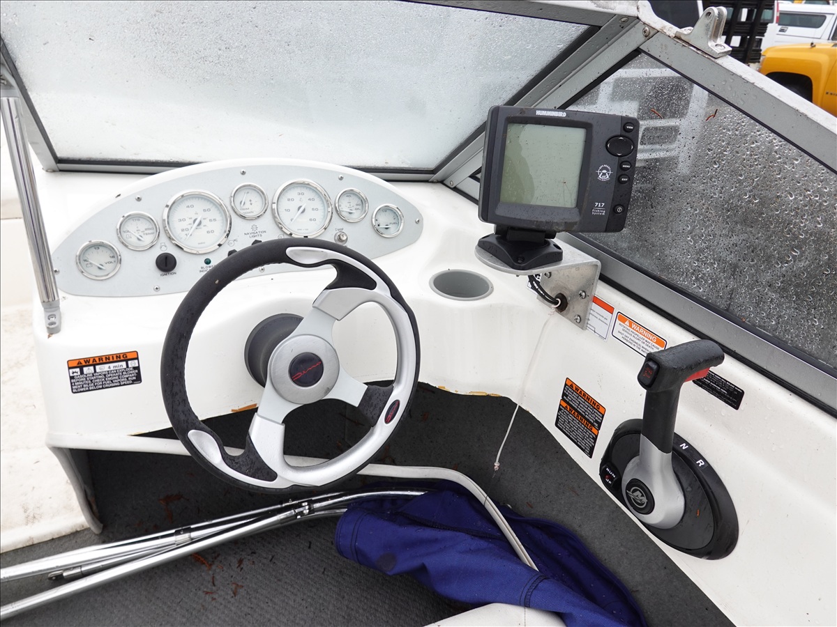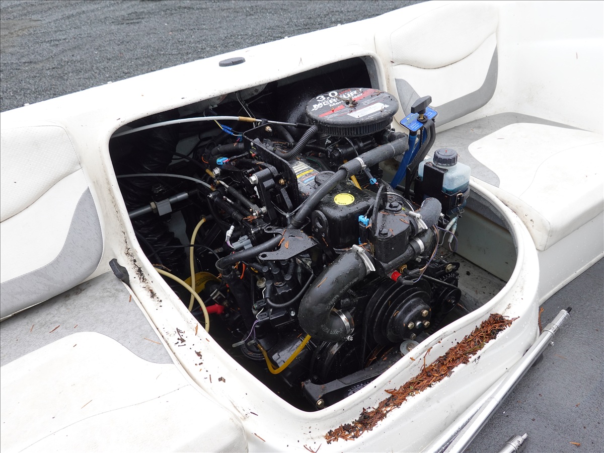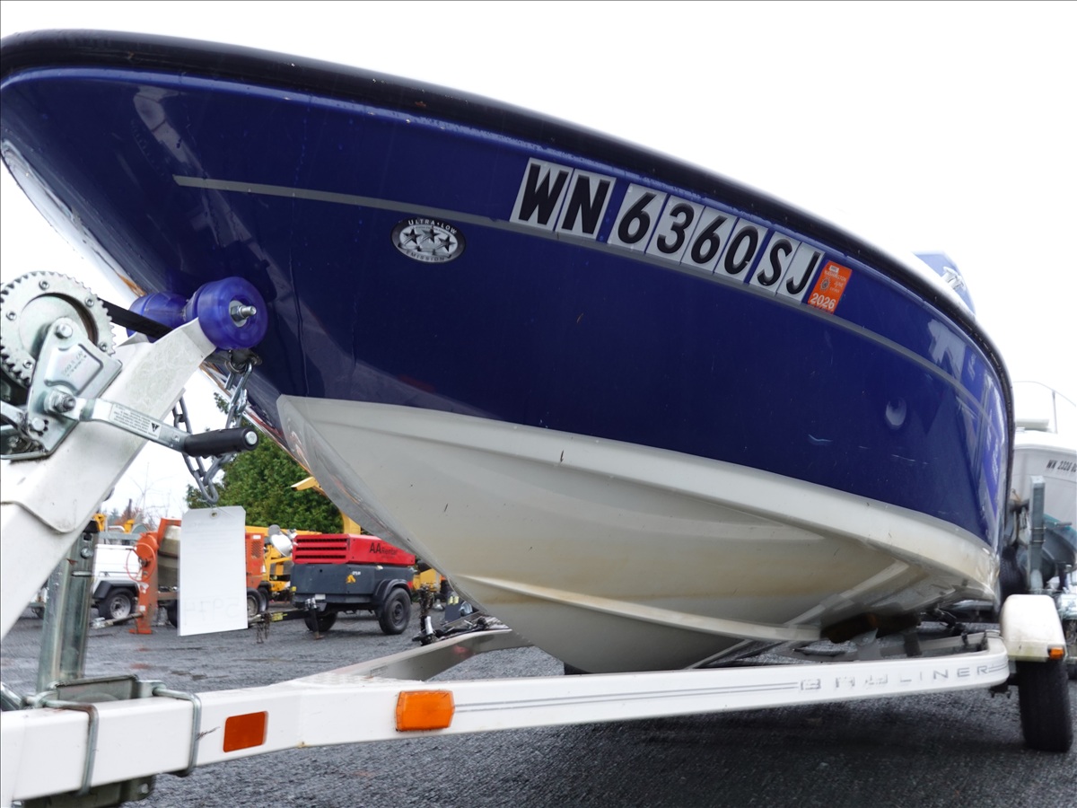 17' OPEN BOW RUNABOUT BOAT, MERCRUISER 4 CYL INBOARD/OUTBOARD, ALPHA ONE OUT DRIVE, CANVAS COVERS W/ 2008 KARAVAN S/A BOAT TRAILER (TRAILER S/N: 5KTBS19158F203036)